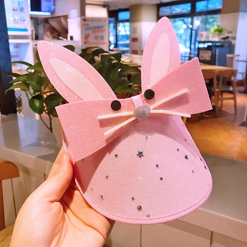 Chapéu de sol infantil Chapéu de sol de verão feminino Chapéu de sol vazio Chapéu de sol do bebê Desenho animado Orelhas compridas Coelho Grande cornija