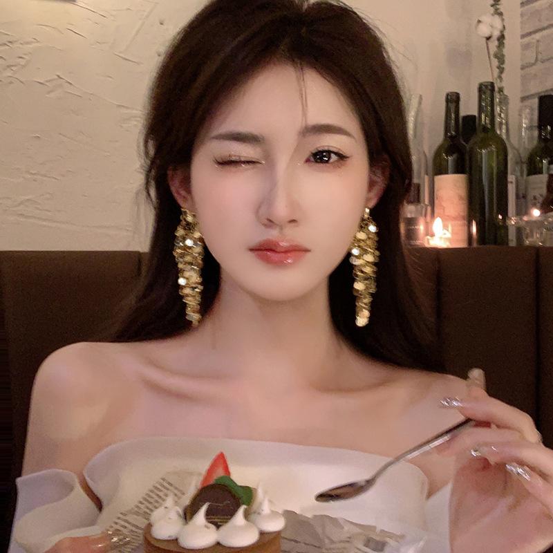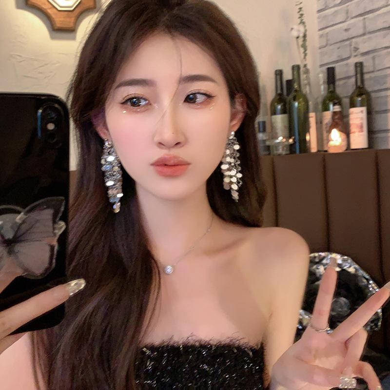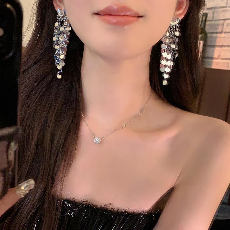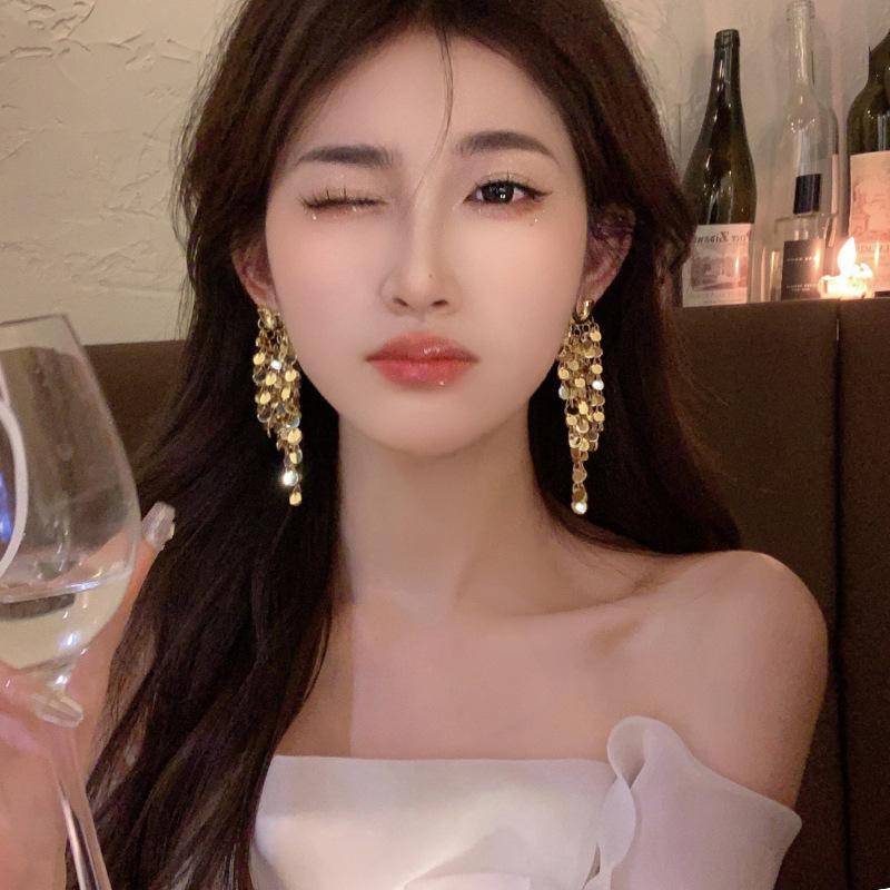 2025 Novo Design de Nicho Brincos da Moda com Borla de Paetês de Metal para Mulheres Moda de Luxo Acessível Brincos Versáteis Tendência