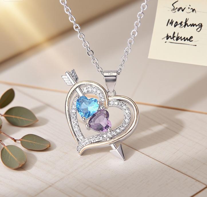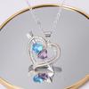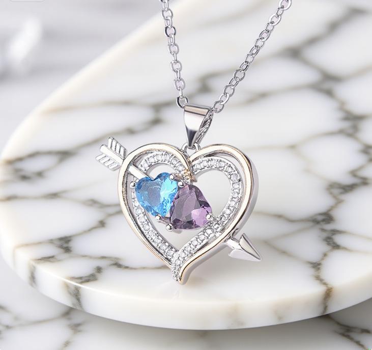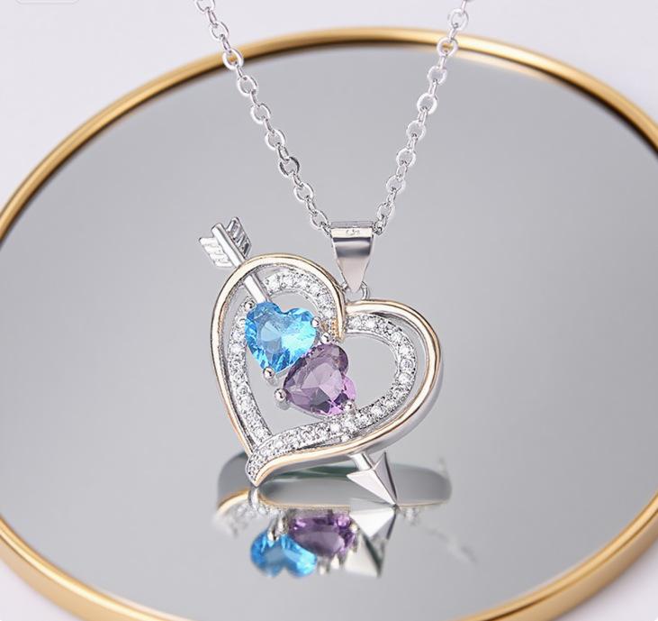 Pingente Bicolor em Forma de Coração Ningzi Wish Coração a Coração Europeu e Americano Diamante Completo Banhado a Prata Colar Pedra de Nascimento Atualmente