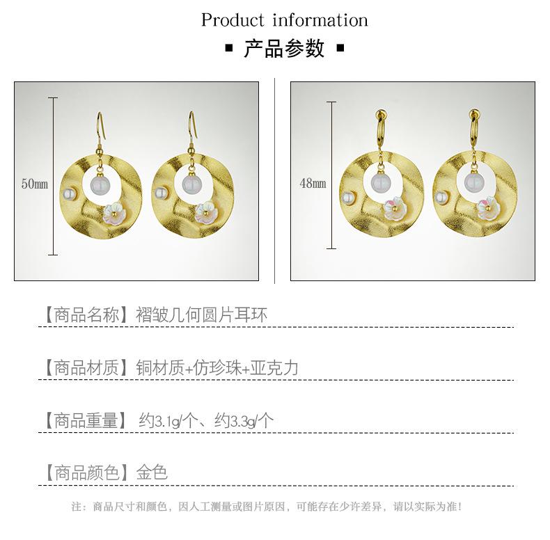 Pleated geometric wafer earrings [metal ear hook]], Pleated geometric wafer earrings [Spring ear clip]]