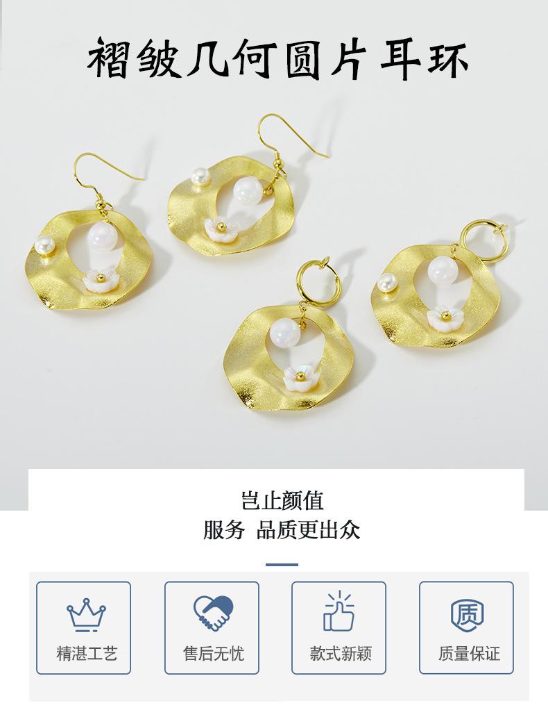 Nicho ins estilo plissado geométrica wafer brincos simples doce gancho de orelha romântico novo brincos de alta qualidade atacado
