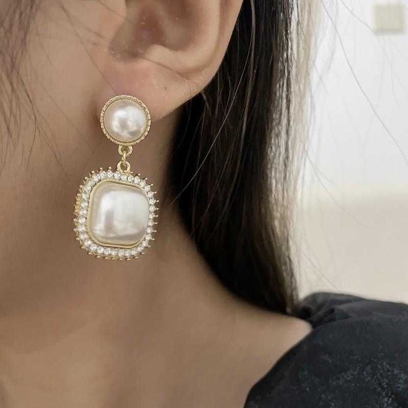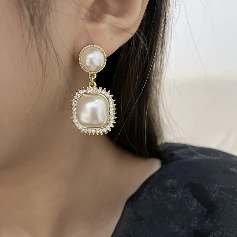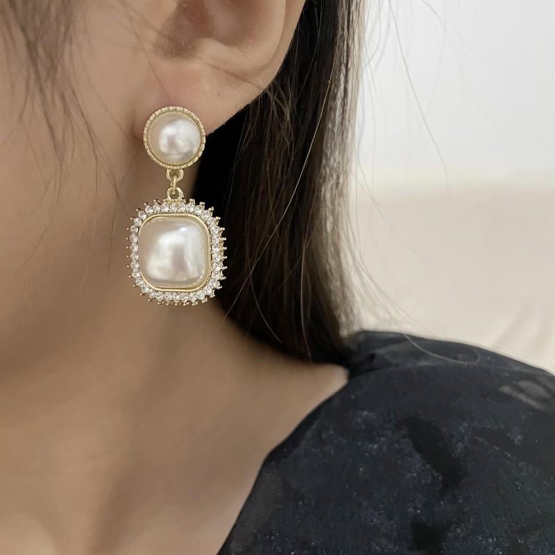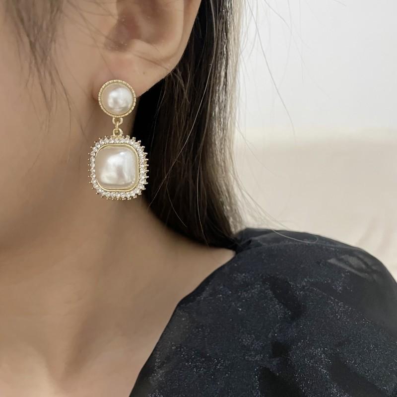 Retro estilo de Hong Kong Super Flash strass brincos de pérola moda feminina temperamento nicho brincos de alta qualidade novas jóias