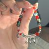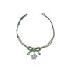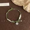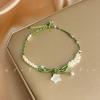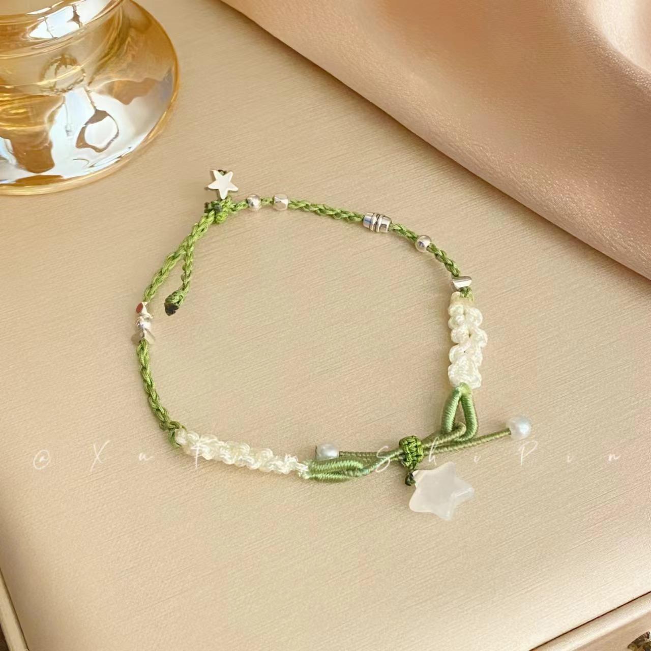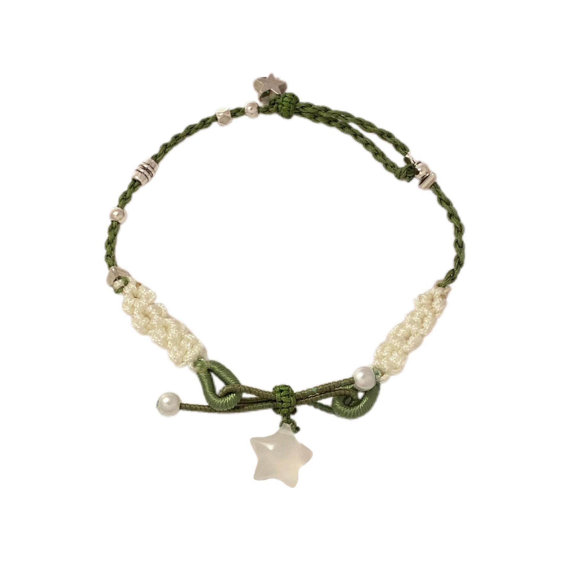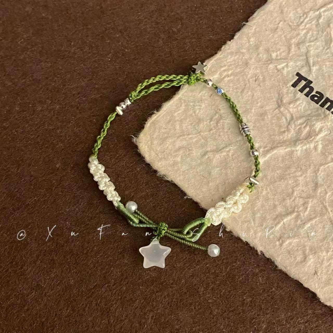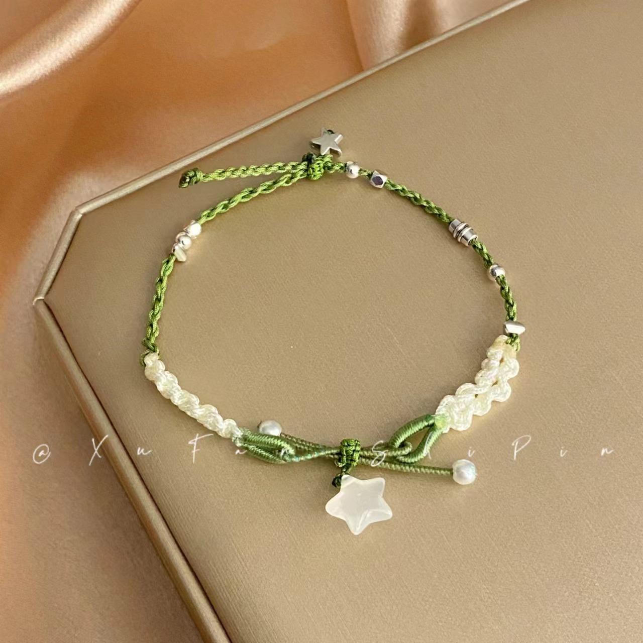 Novo design de nicho de estilo chinês antigo, pulseira tecida verde feita à mão com laço de estrelinha, joia de mão feminina de luxo leve