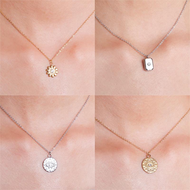 Compre Joias Francesas Estrela de Oito Pontas Zircônia Tijolo Quadrado Aço Titânio Colar Banhado a Ouro 18K Venda Quente Transfronteiriça Pingente de Girassol Joias no atacado no Joom.pro