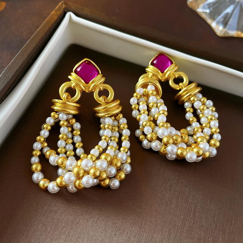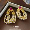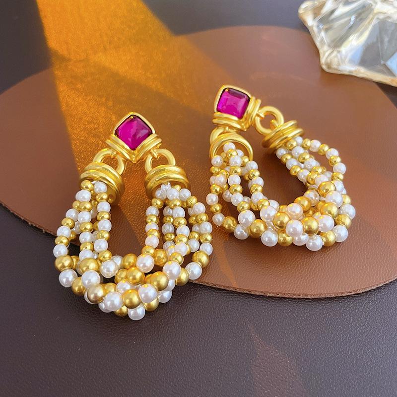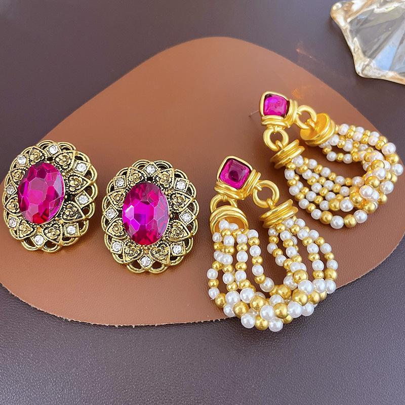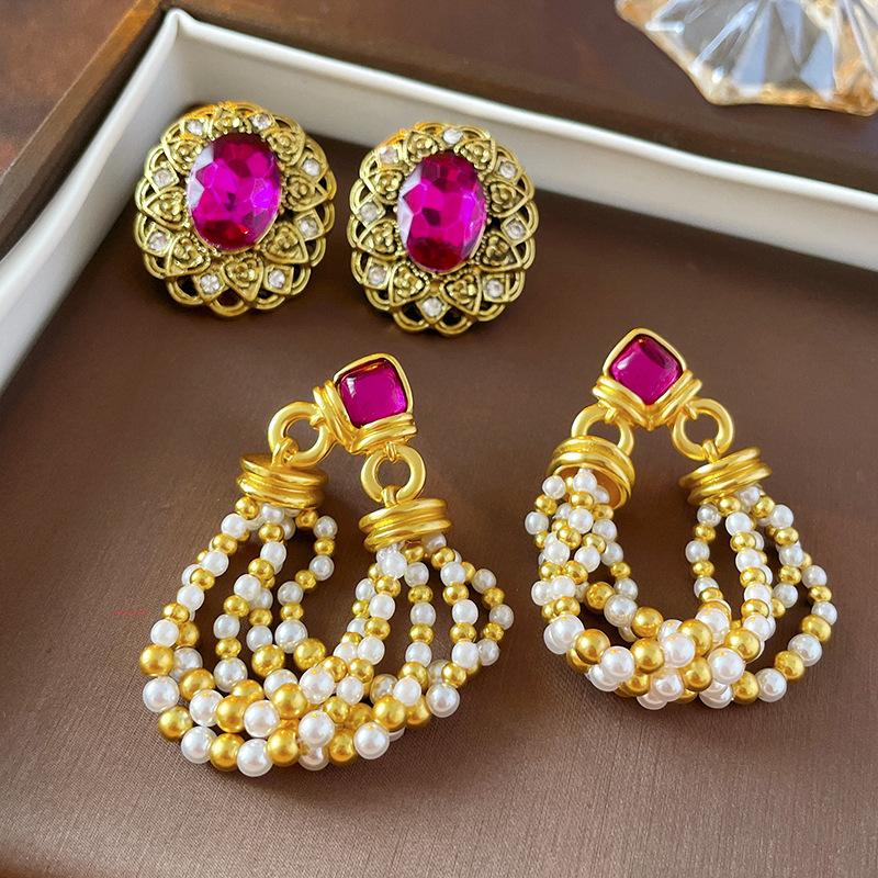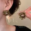 Agulha de prata meados de Antigo padrão de diamante oval pérola borla brincos Palace estilo nicho brincos novos brincos atacado para as mulheres