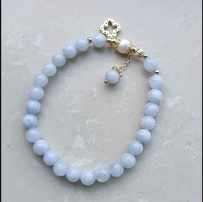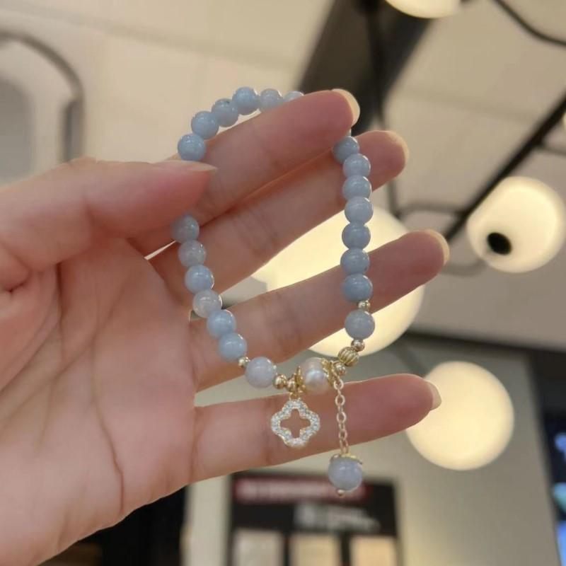 Compre Ins pulseira de cristal tesouro azul estilo coreano anel único pulseira de borla de pérola de água doce feminina joias atacado no atacado no Joom.pro