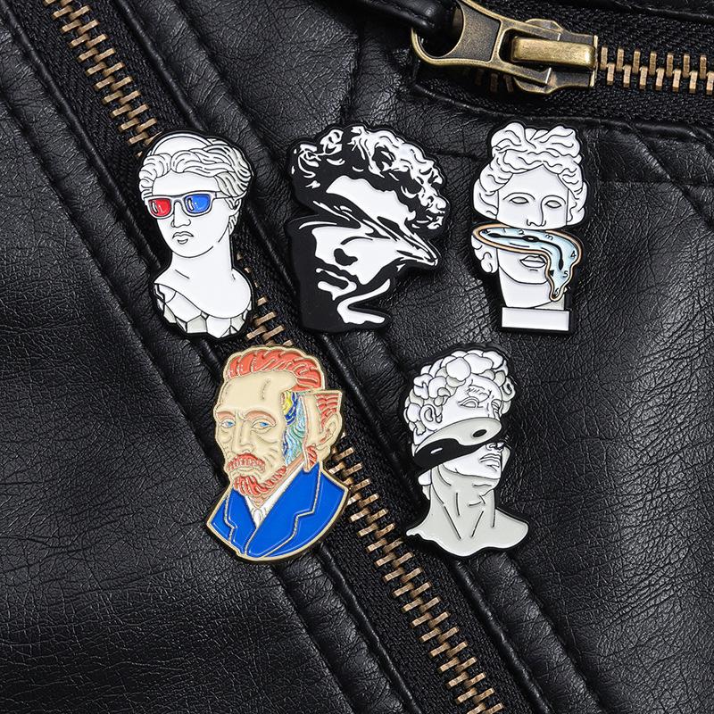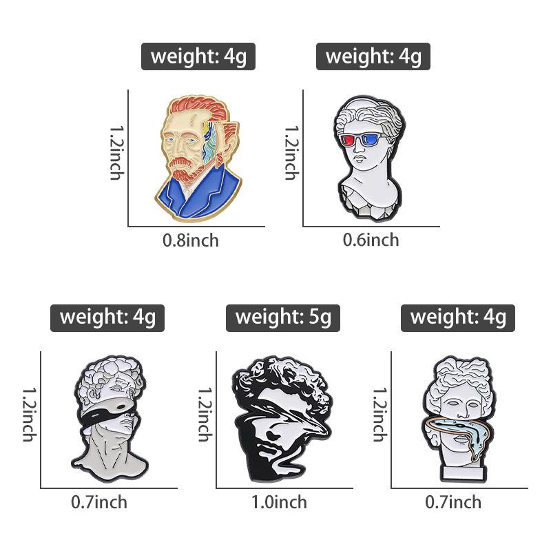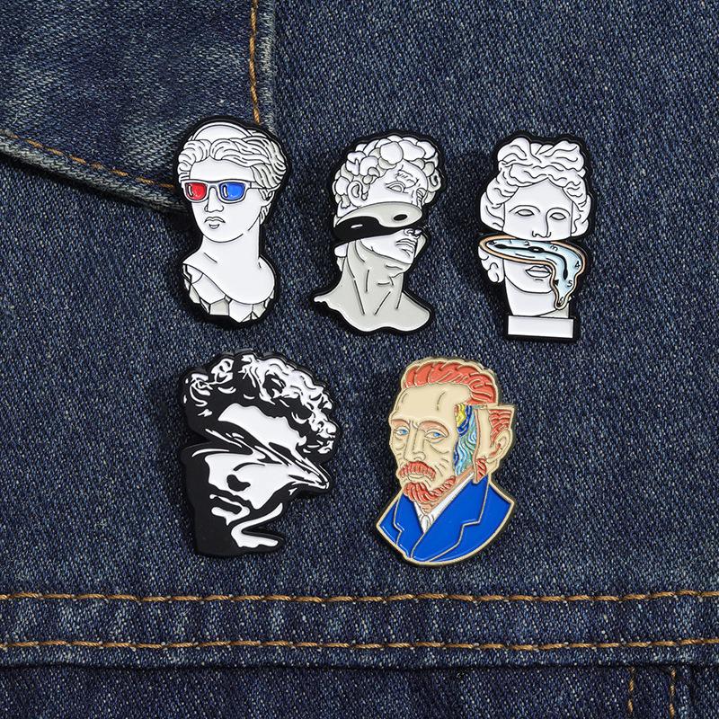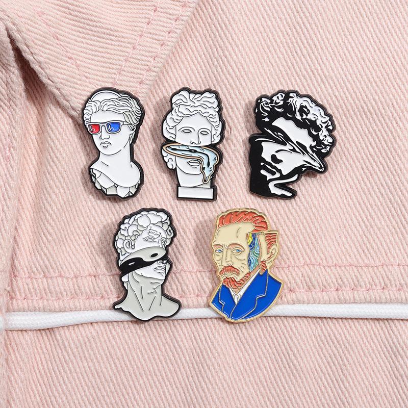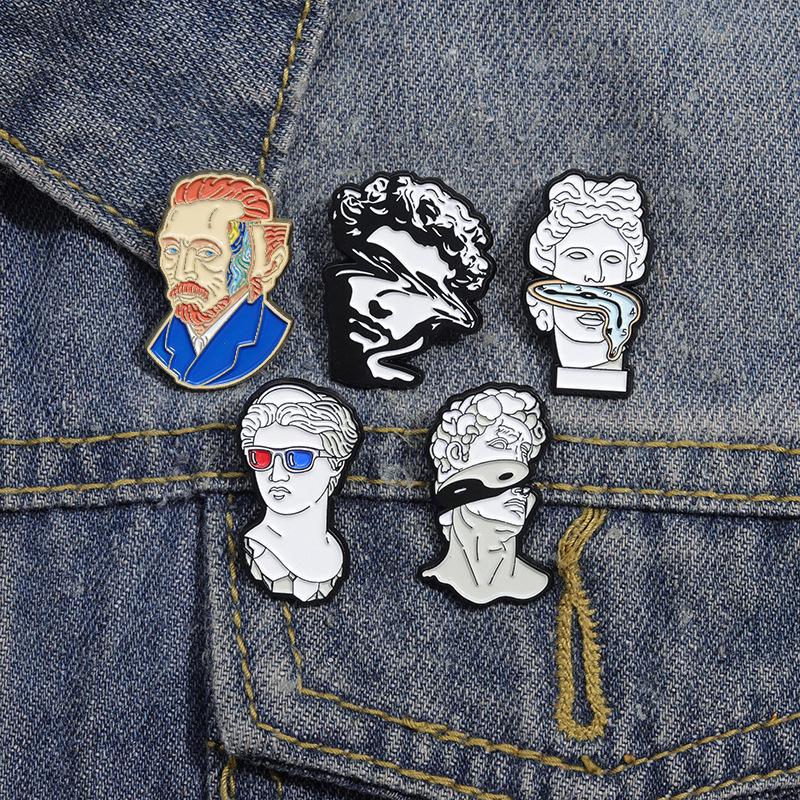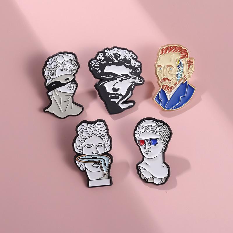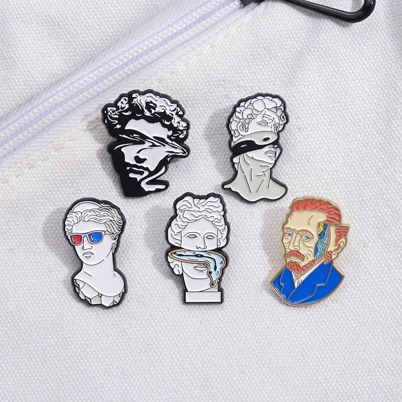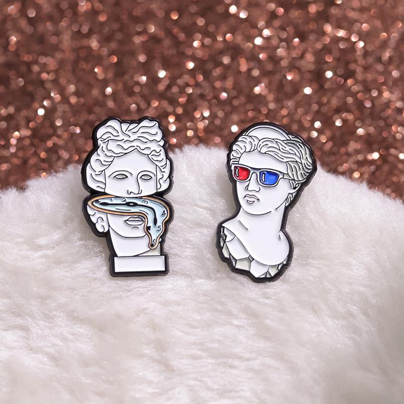 Broche de Personagem com Tema de Arte Criativa de Novo Produto Europeu e Americano Escultura Personalizada Forma de David Distintivo de Metal Pin Transfronteiriço