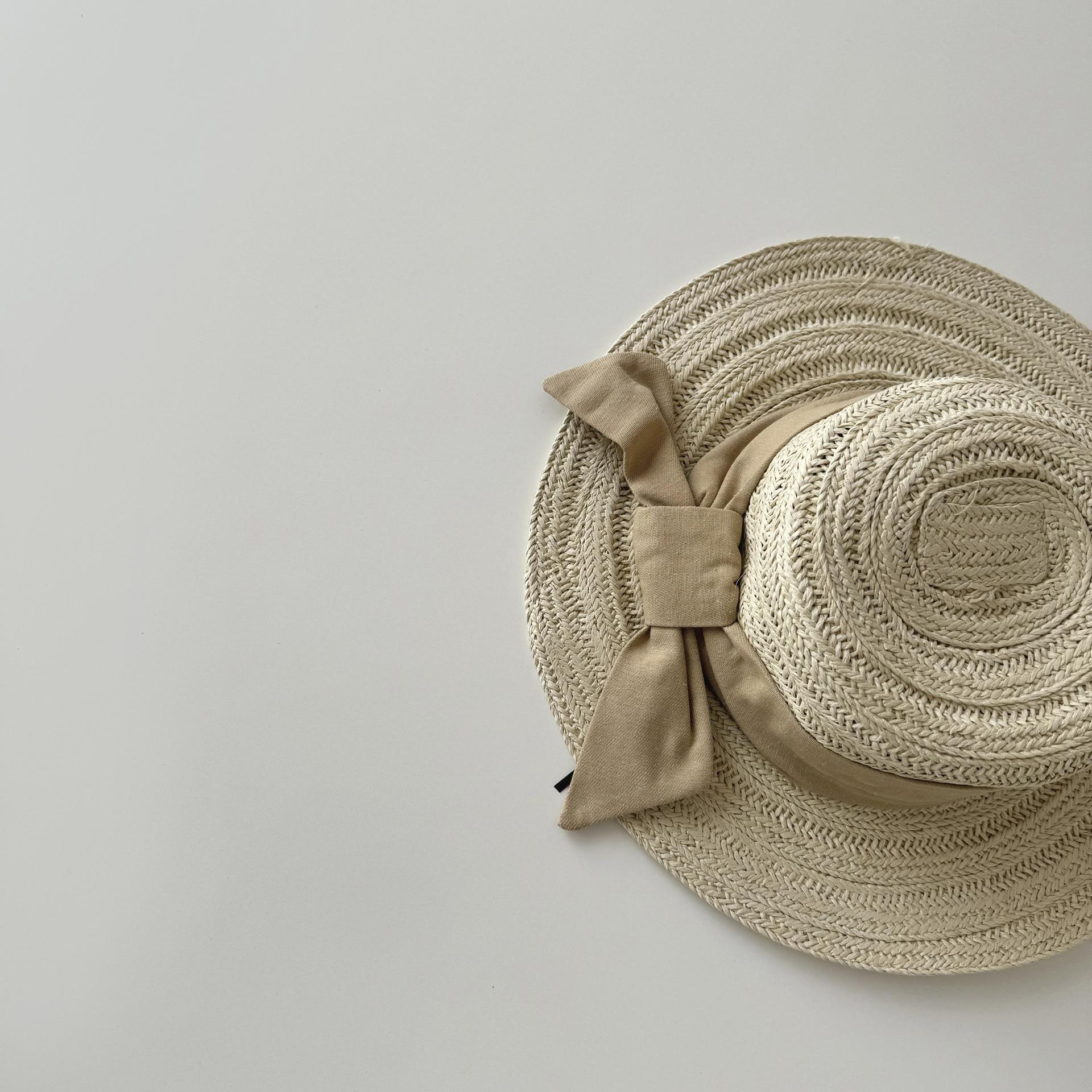 Outono estilo sul-coreano chapéu de palha infantil verão novo ins arco de palha praia chapéu de bebê chapéu de sol atacado