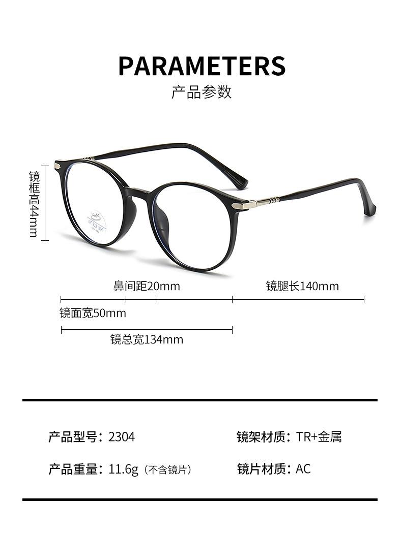 Novo 2304 Grande Quadro Moda Quadro Unissex Óculos Quadro TR90 Quadro Óculos Planos Anti-azul Óculos