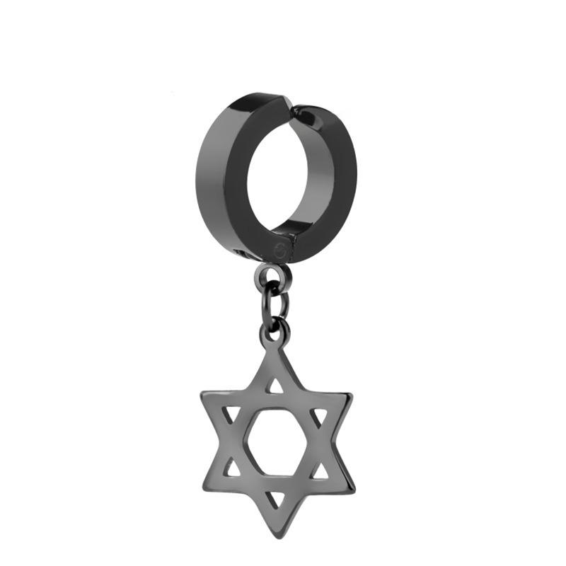 Atacado de aço inoxidável não perfurado cruz seis pontas estrela brincos homens e mulheres clipe de orelha Amazon venda quente brincos personalizados