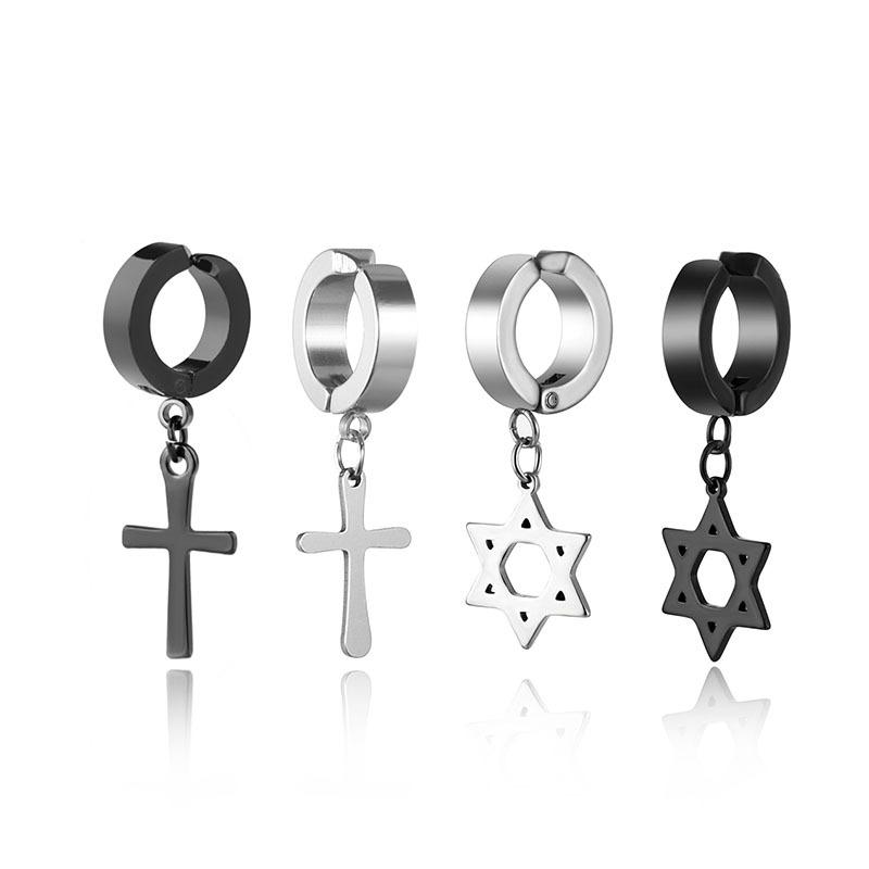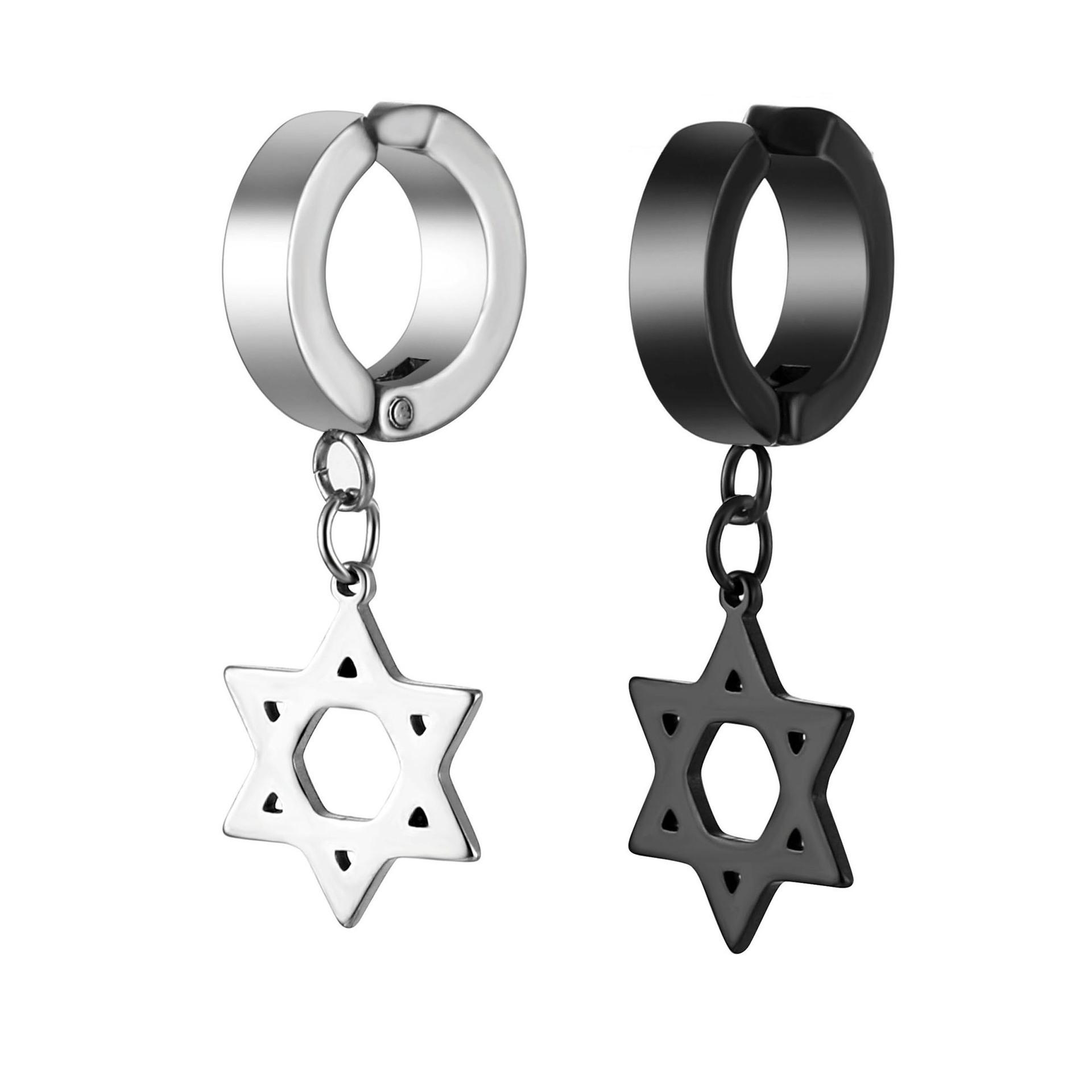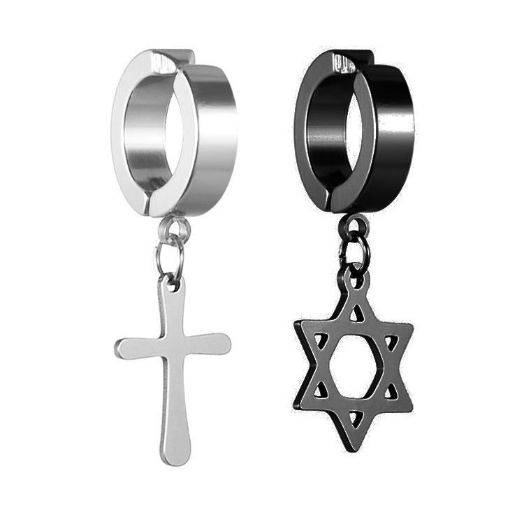 Compre Atacado de aço inoxidável não perfurado cruz seis pontas estrela brincos homens e mulheres clipe de orelha Amazon venda quente brincos personalizados no atacado no Joom.pro
