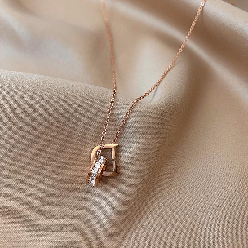 F58 a【8358】d letter circle diamond rose gold
