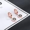 Moda simples redondo romano titânio aço orelha fivela ouro rosa preto concha brincos feminino criativo requintado pequeno jóias atacado