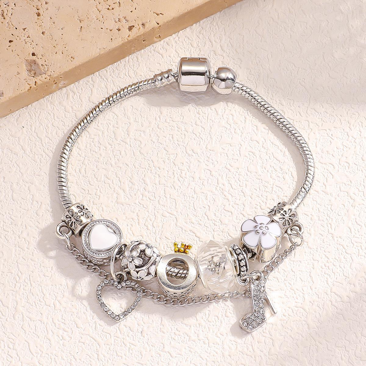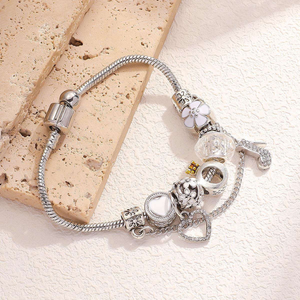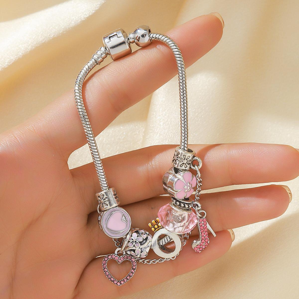 Pulseira DIY Explosões AliExpress Panjia Feminina Diamante Branco Salto Alto Pingente Coração de Pêssego com Pulseira Corrente Osso de Cobra