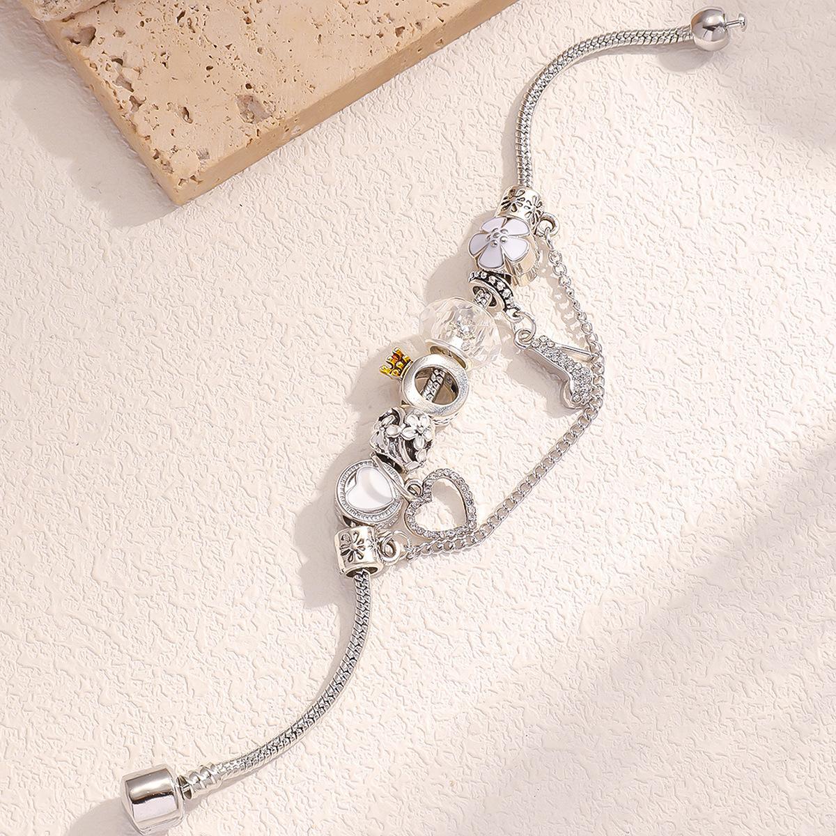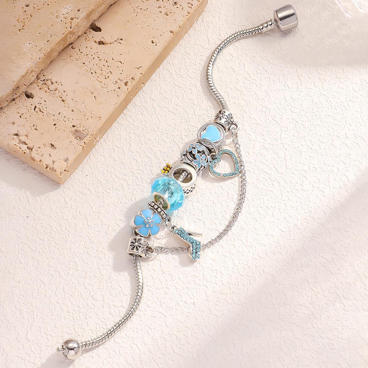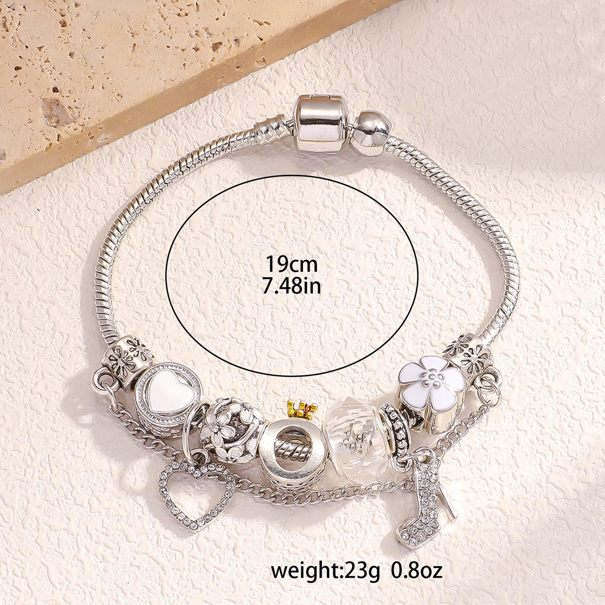 Pulseira DIY Explosões AliExpress Panjia Feminina Diamante Branco Salto Alto Pingente Coração de Pêssego com Pulseira Corrente Osso de Cobra