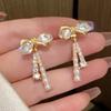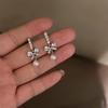 Estilo francês elegante pérola arco cristal borla brincos das mulheres novo elegante nicho design brincos doces