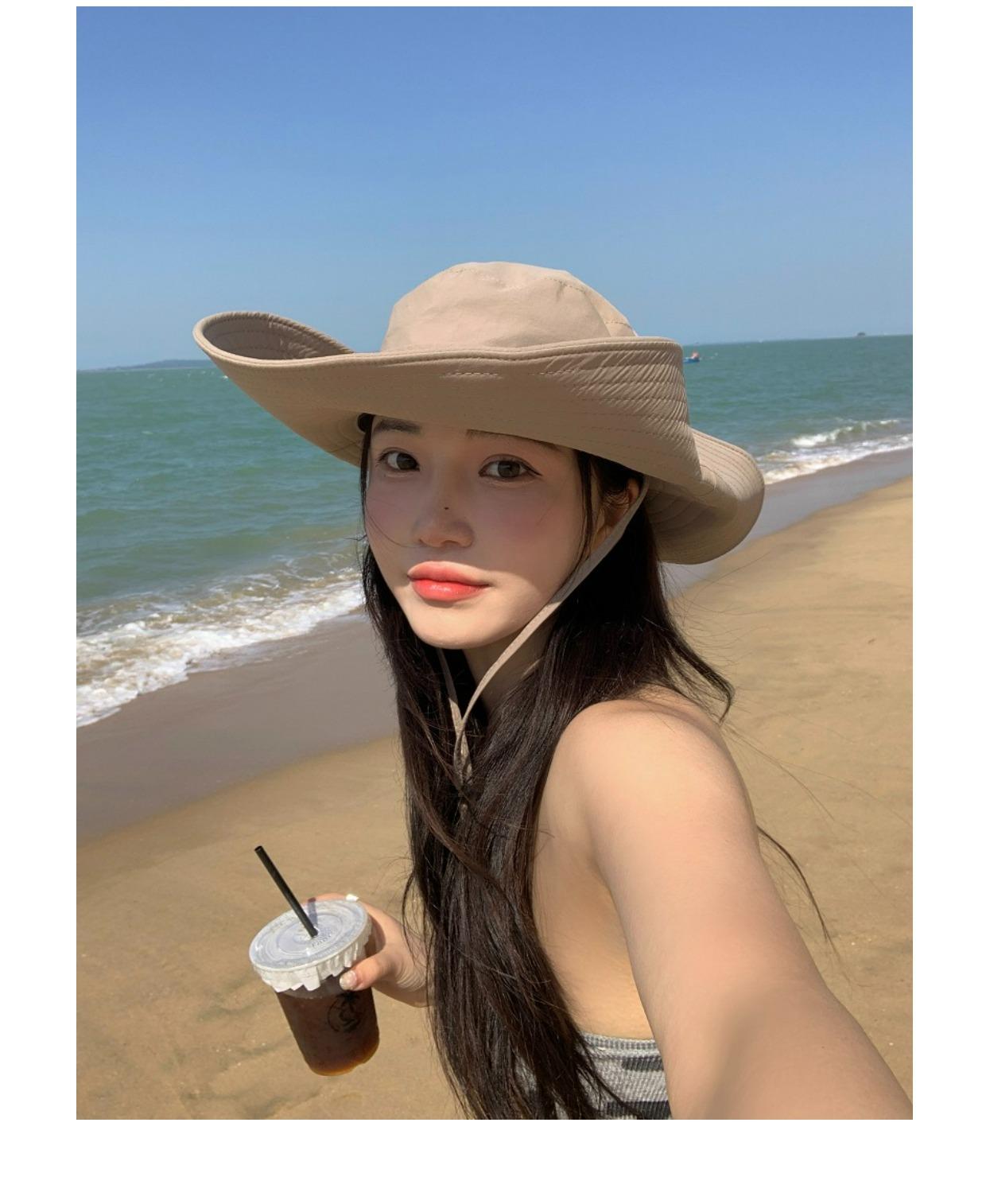 Chapéu de palha de viagem com arco de verão, chapéu feminino anti-ultravioleta, aba grande, proteção solar, chapéu de balde de pescador