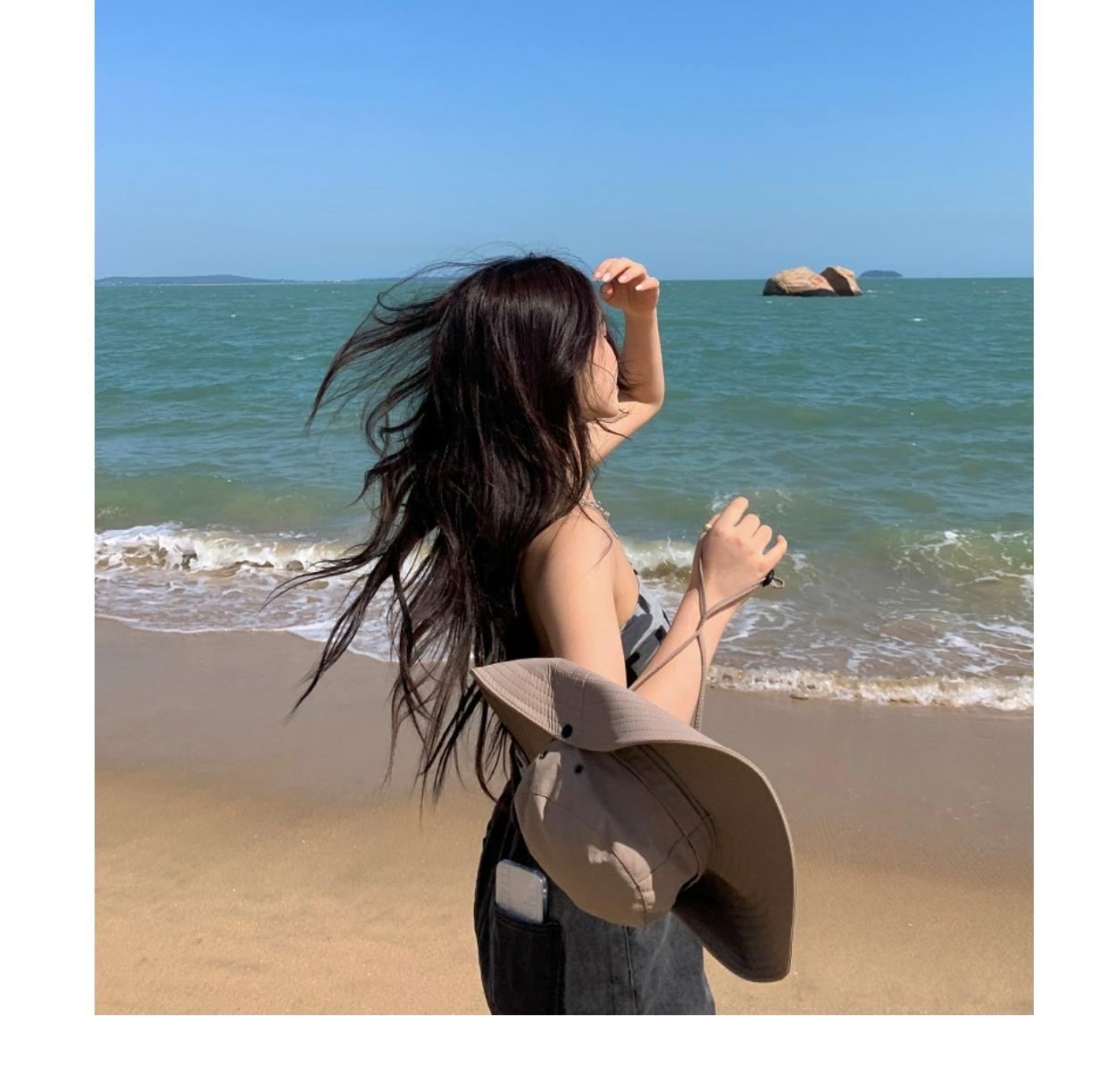 Chapéu de sol chapéu de sol chapéu de palha feminino faixa de cabeça topo vazio ráfia laço nó aba grande verão praia à beira-mar