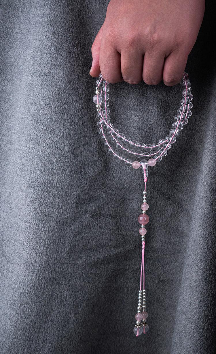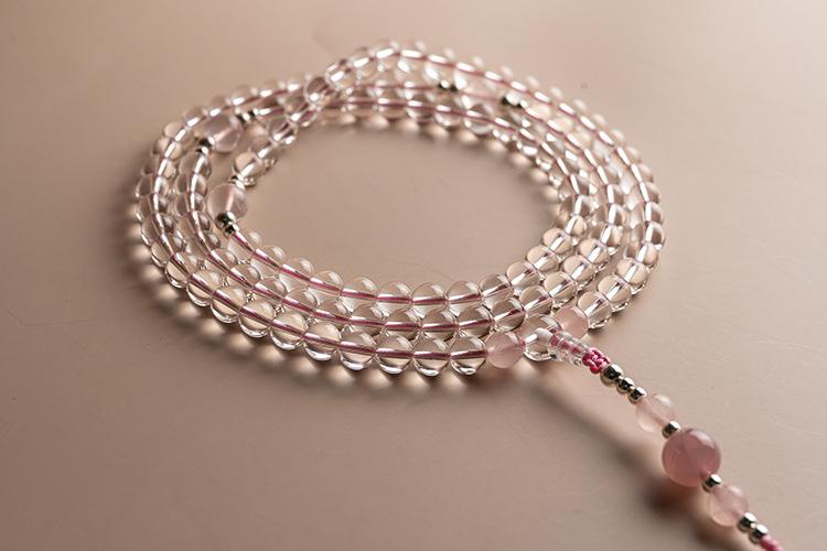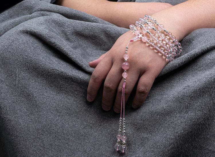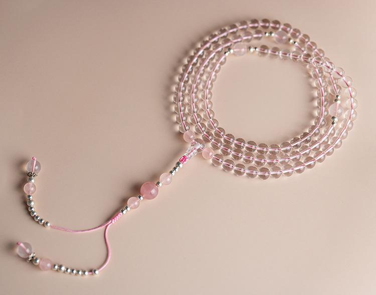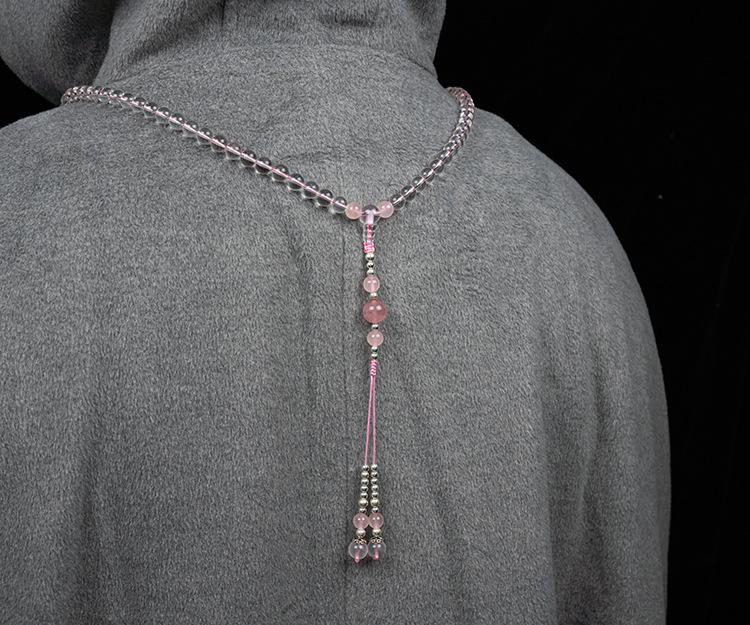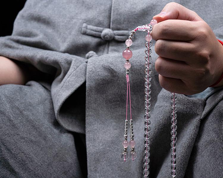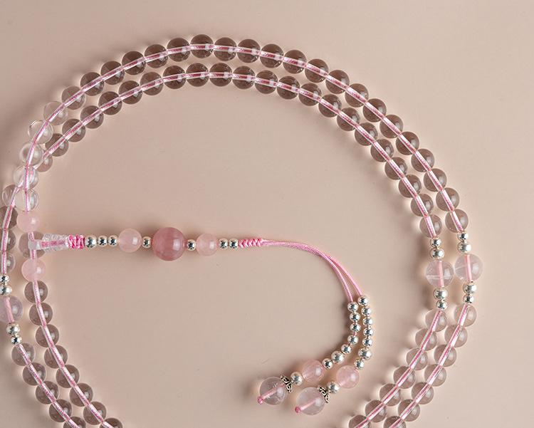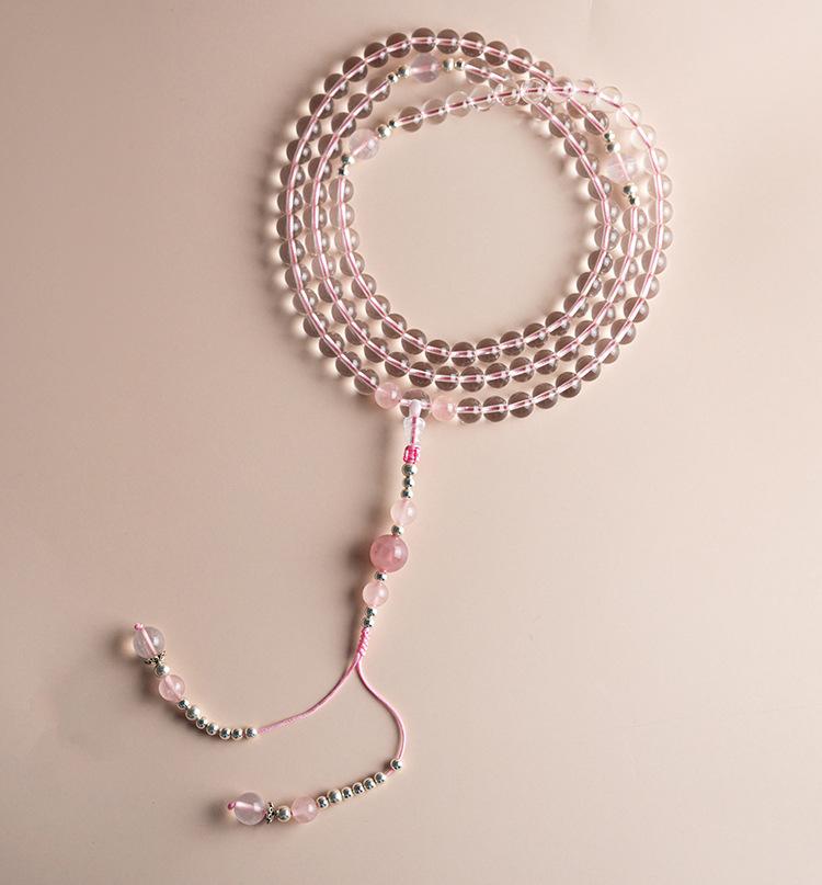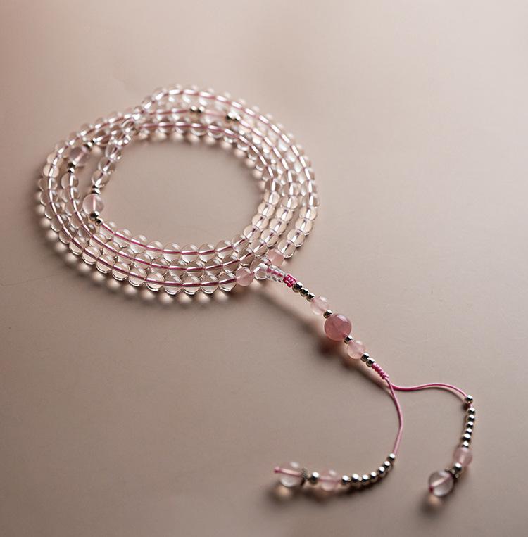 Pulseira de cristal branco natural com cristal rosa 108 contas corrente de suéter multicírculo pulseira retrô masculina e feminina