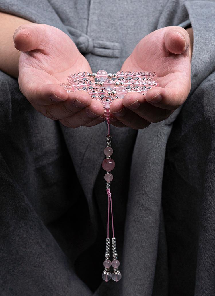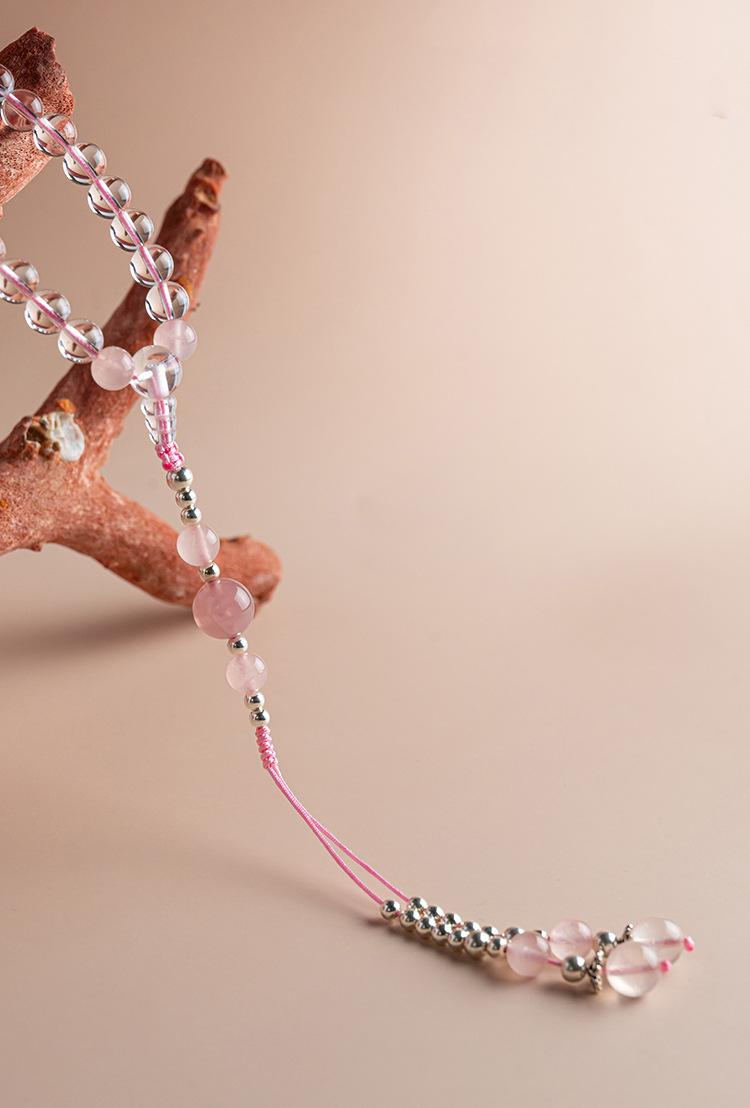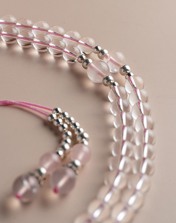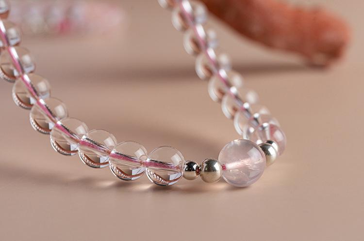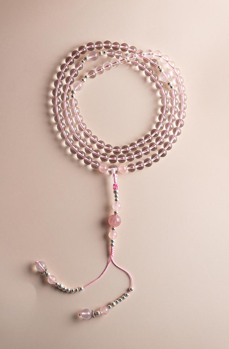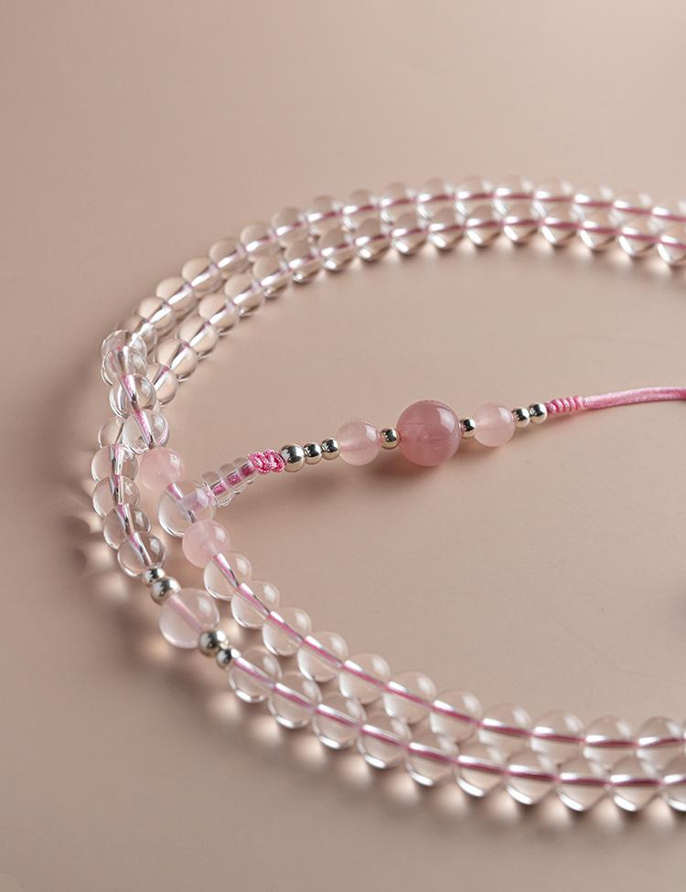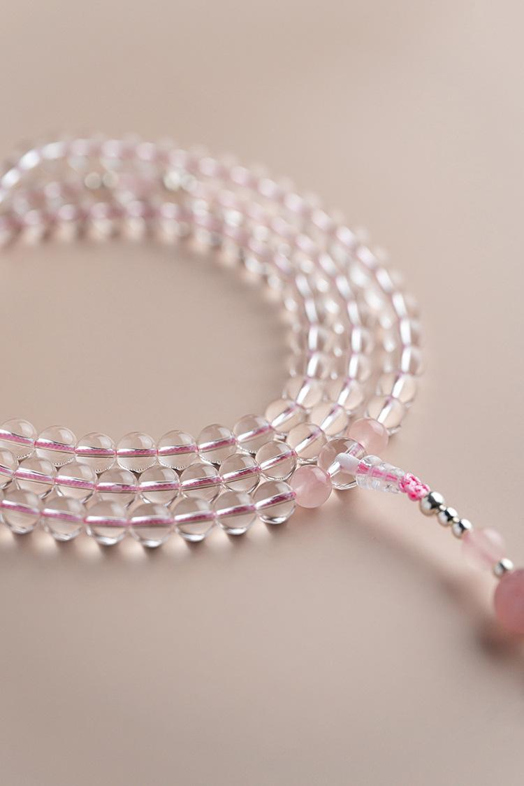 Pulseira de cristal branco natural com cristal rosa 108 contas corrente de suéter multicírculo pulseira retrô masculina e feminina