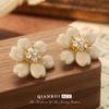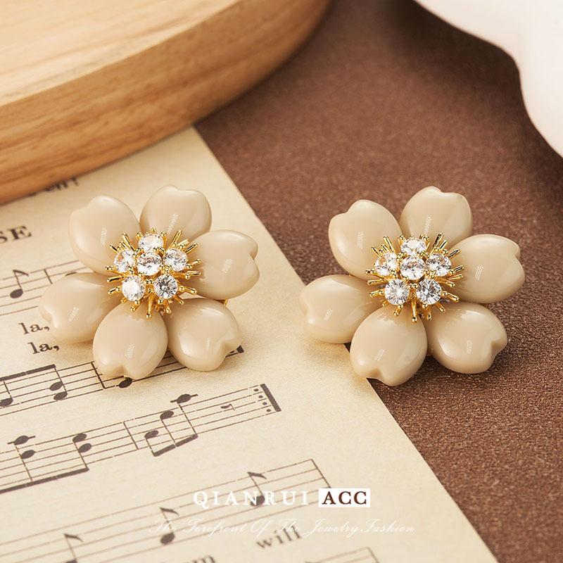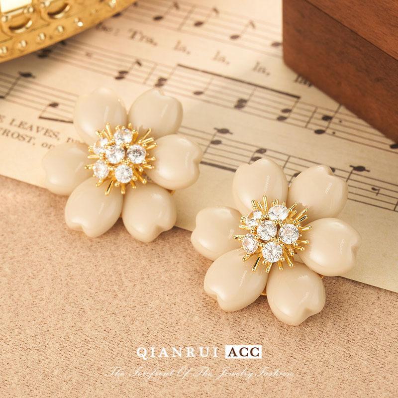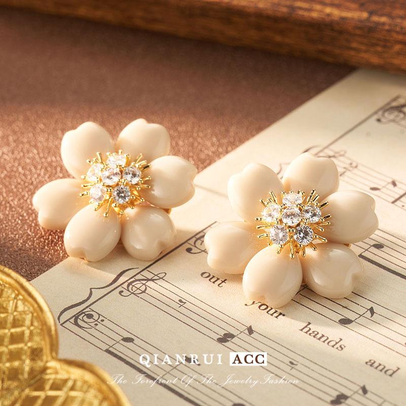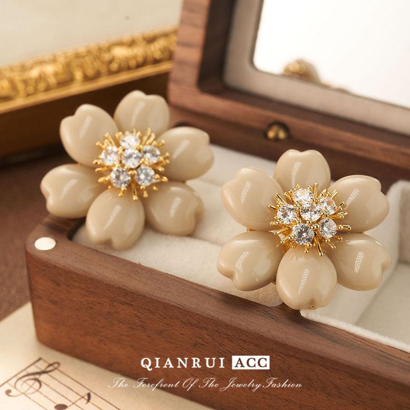 Brincos de flores retrô franceses, elegantes, refinados, médios e antigos, leves, luxuosos, da moda, joias pequenas estilo Chanel