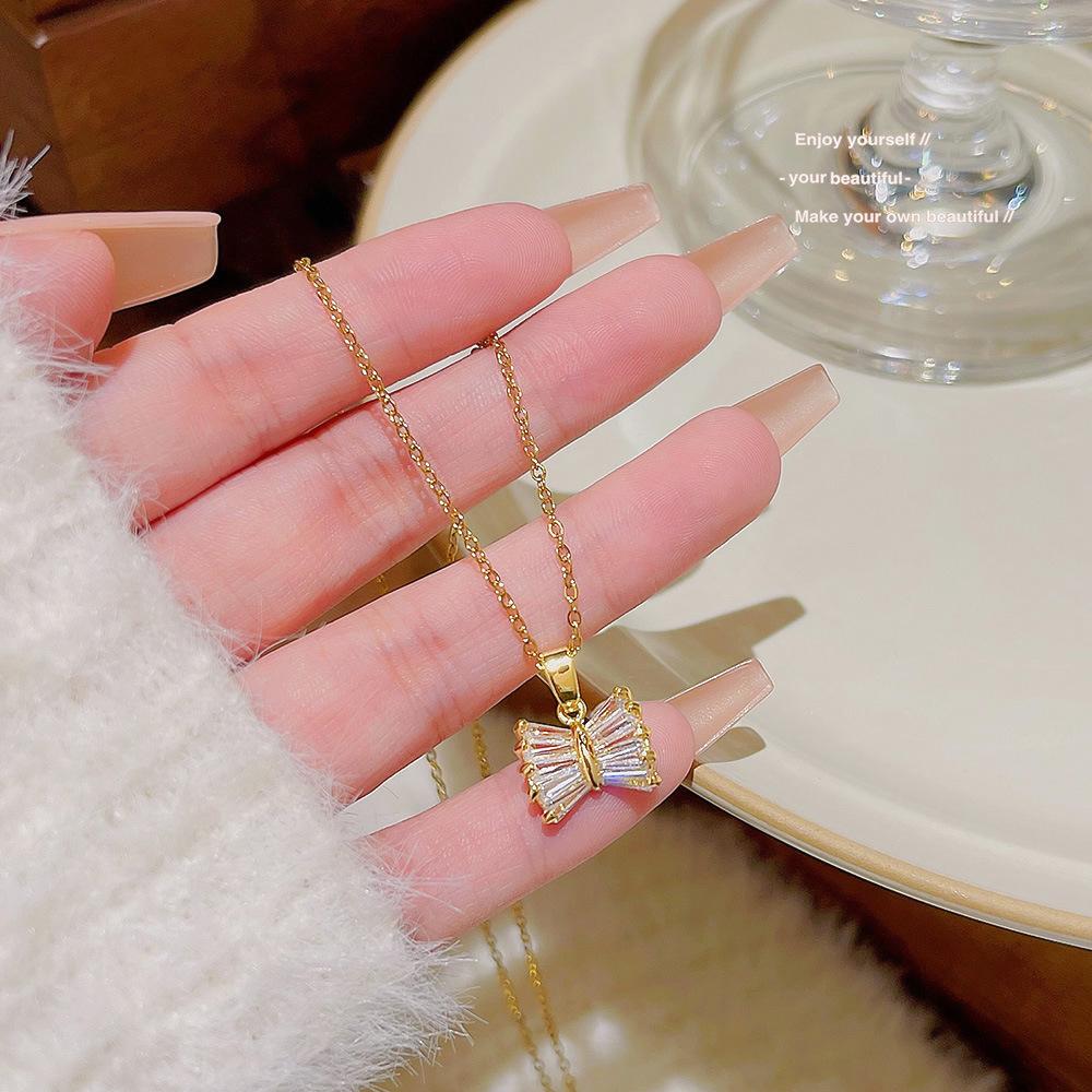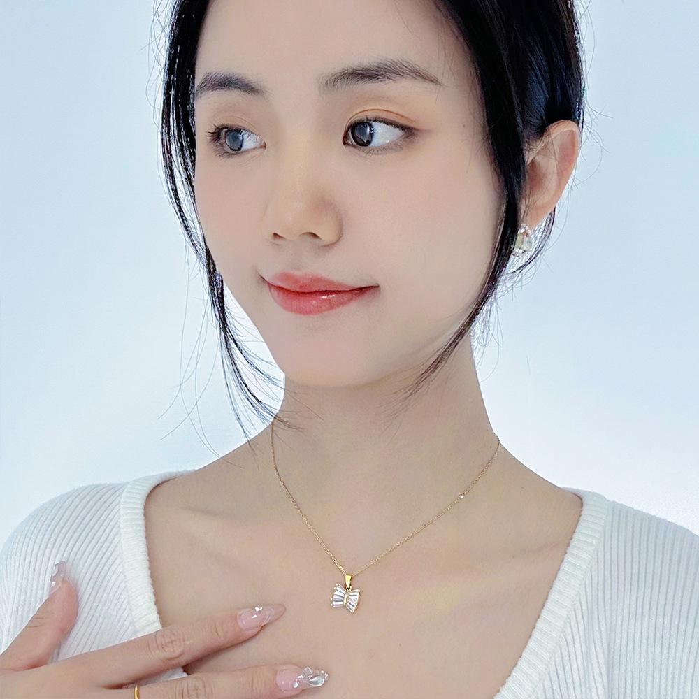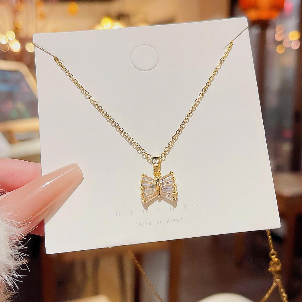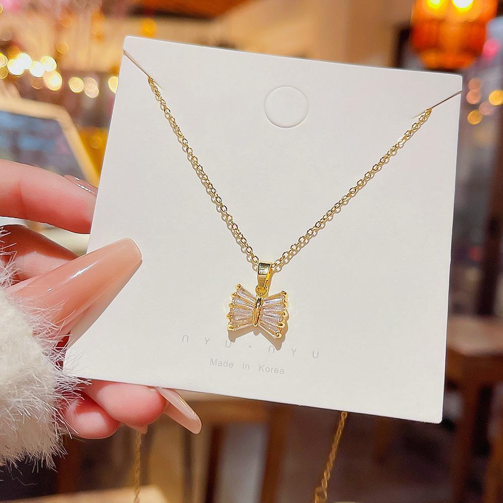 Acessórios de colar de zircão geométrico simples All-Match Niche Pingente Colar Design Corrente Elegante Coreano Titânio Aço Clavícula Cadeia