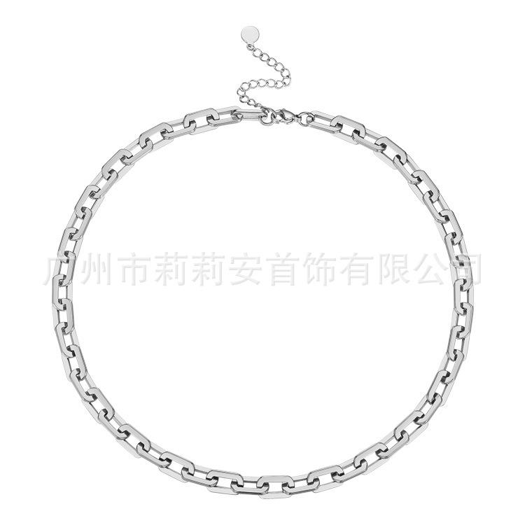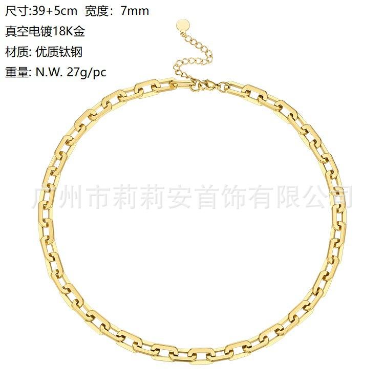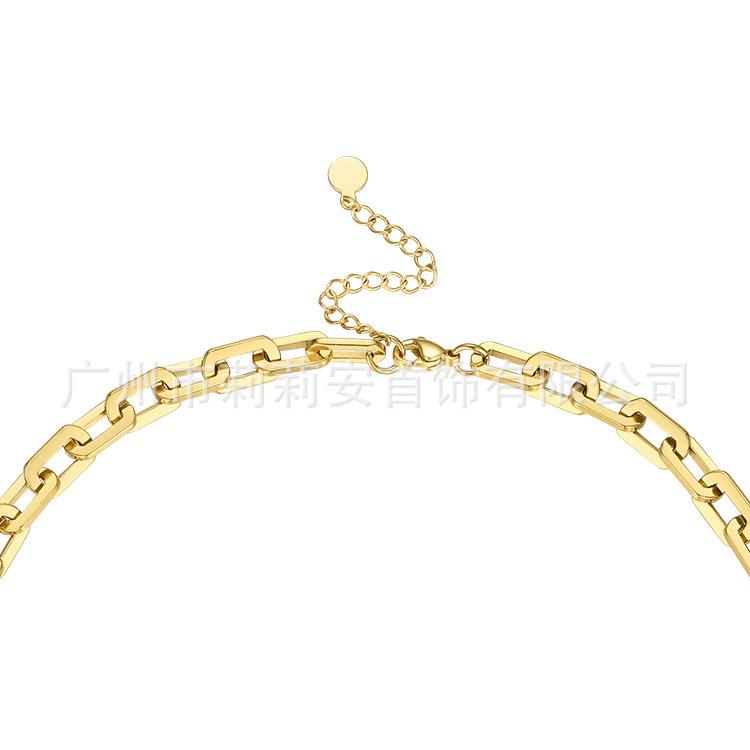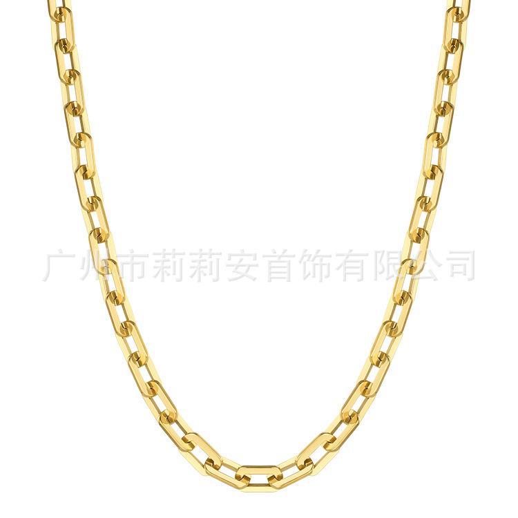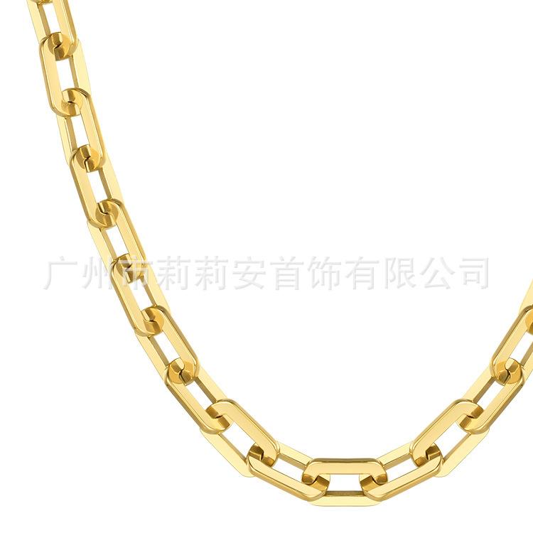 Colar de corrente grossa europeia e americana banhada a ouro 18K em aço titânio personalidade quadrada oval P203159