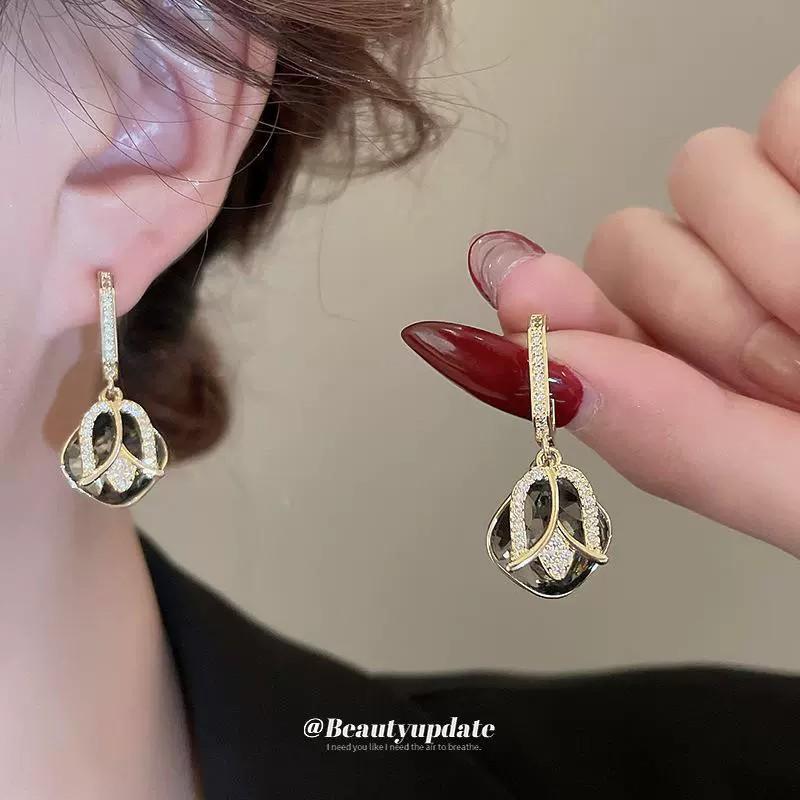 Primavera e Verão Nova Moda Zircon Tulip Micro-incrustado Brincos Quadrados Ins Estilo Elegante Brincos High-end Brincos para Mulheres