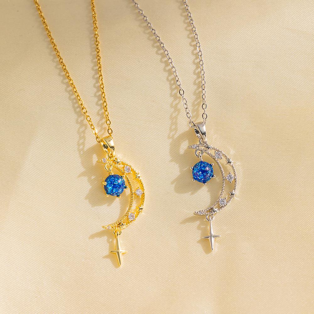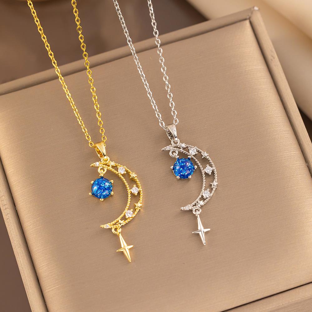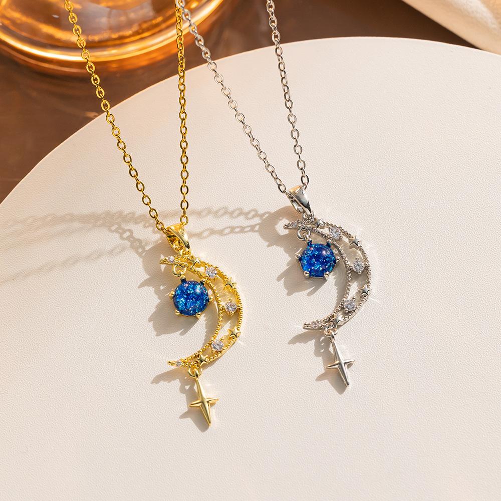 Compre Colar feminino New Blue Star Moon nicho colar de zircão luz luxo high-end design clavícula colar de corrente no atacado no Joom.pro