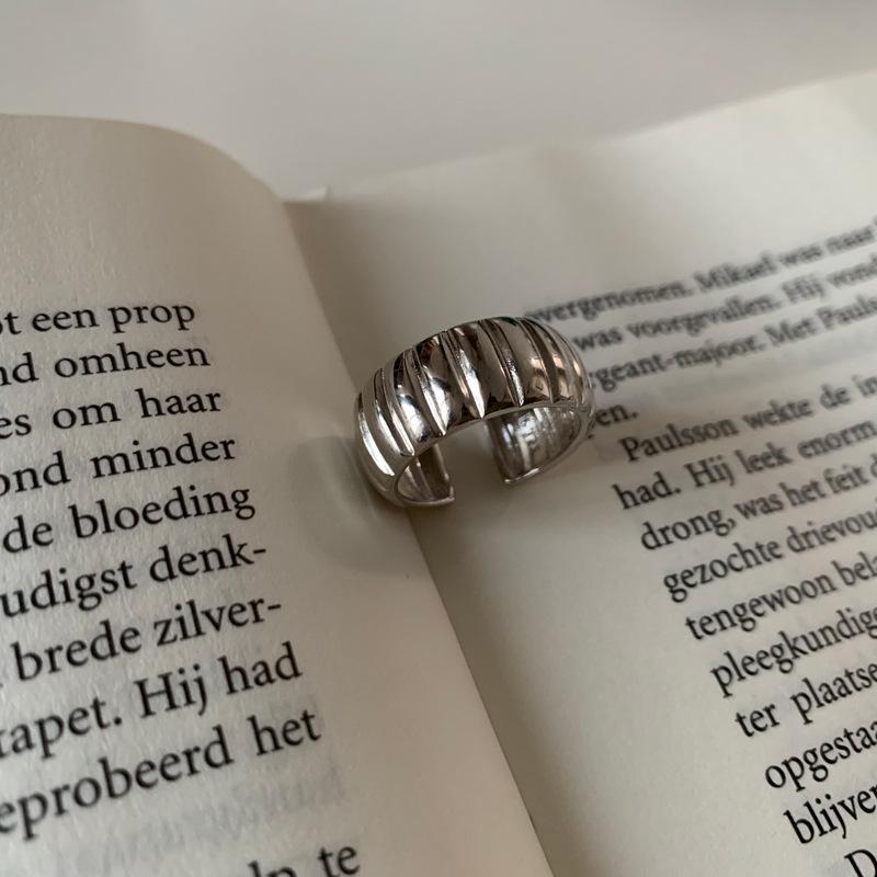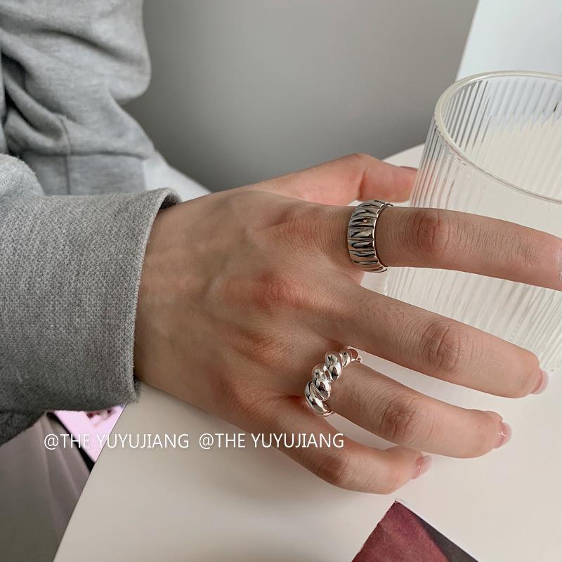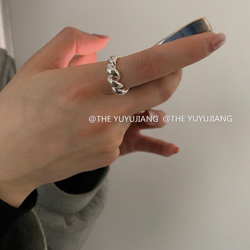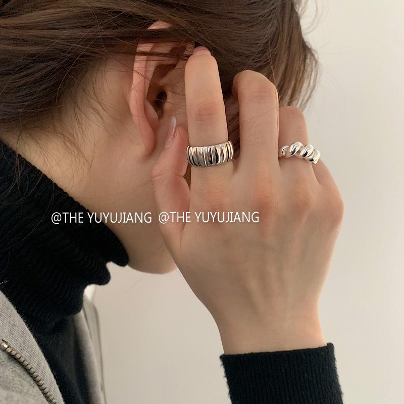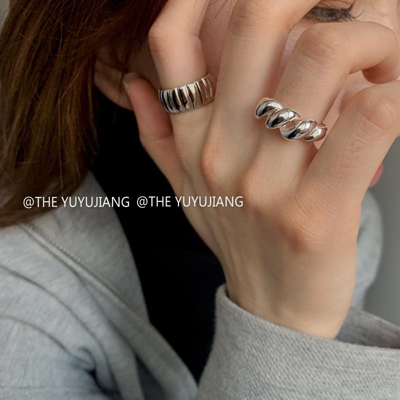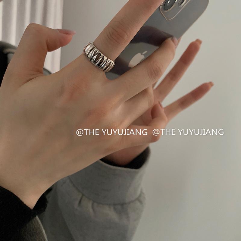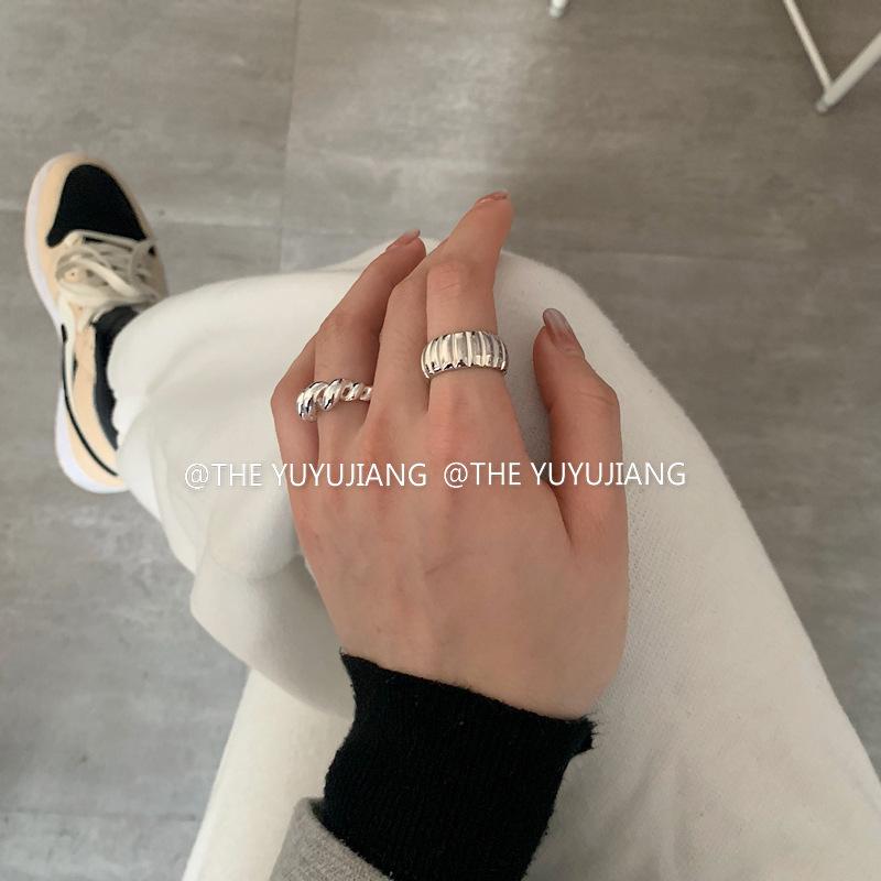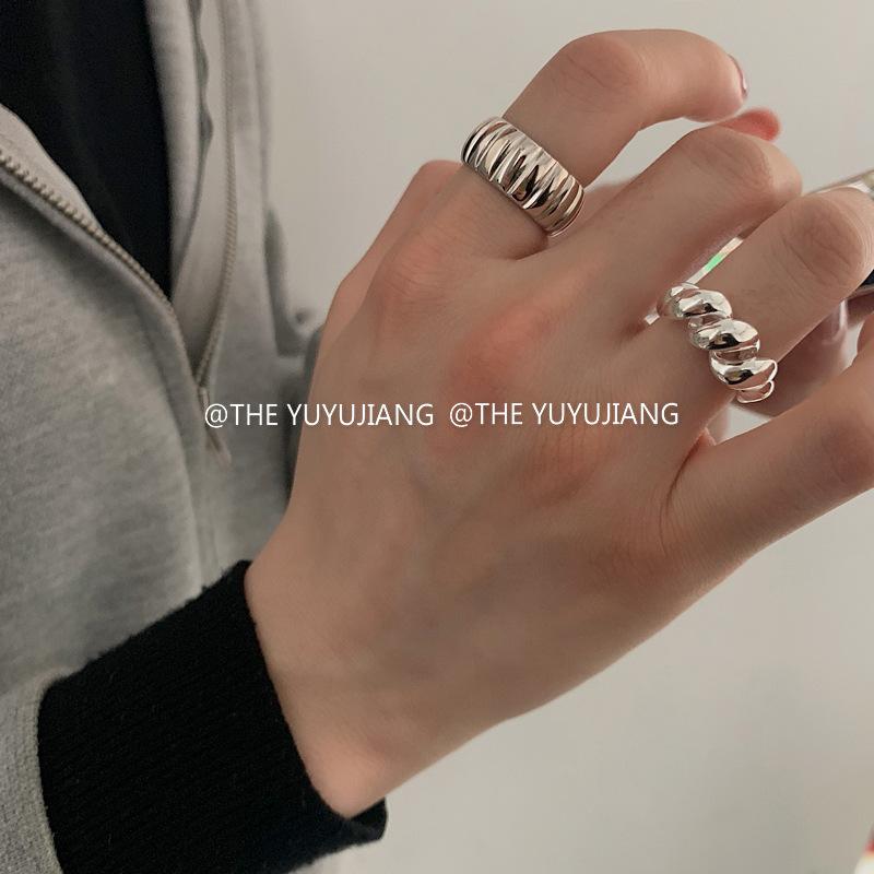 Anel de engrenagem geométrica moda feminina estilo coreano S925 prata Croissant criativo anel aberto ins Hip-Hop anel de dedo