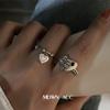 Coreia do Sul Prata S925 Anel Coração Vazado Feminino Retrô Vento Frio Coração de Pêssego Anel de Dedo Estudante Anel de Abertura Trendy