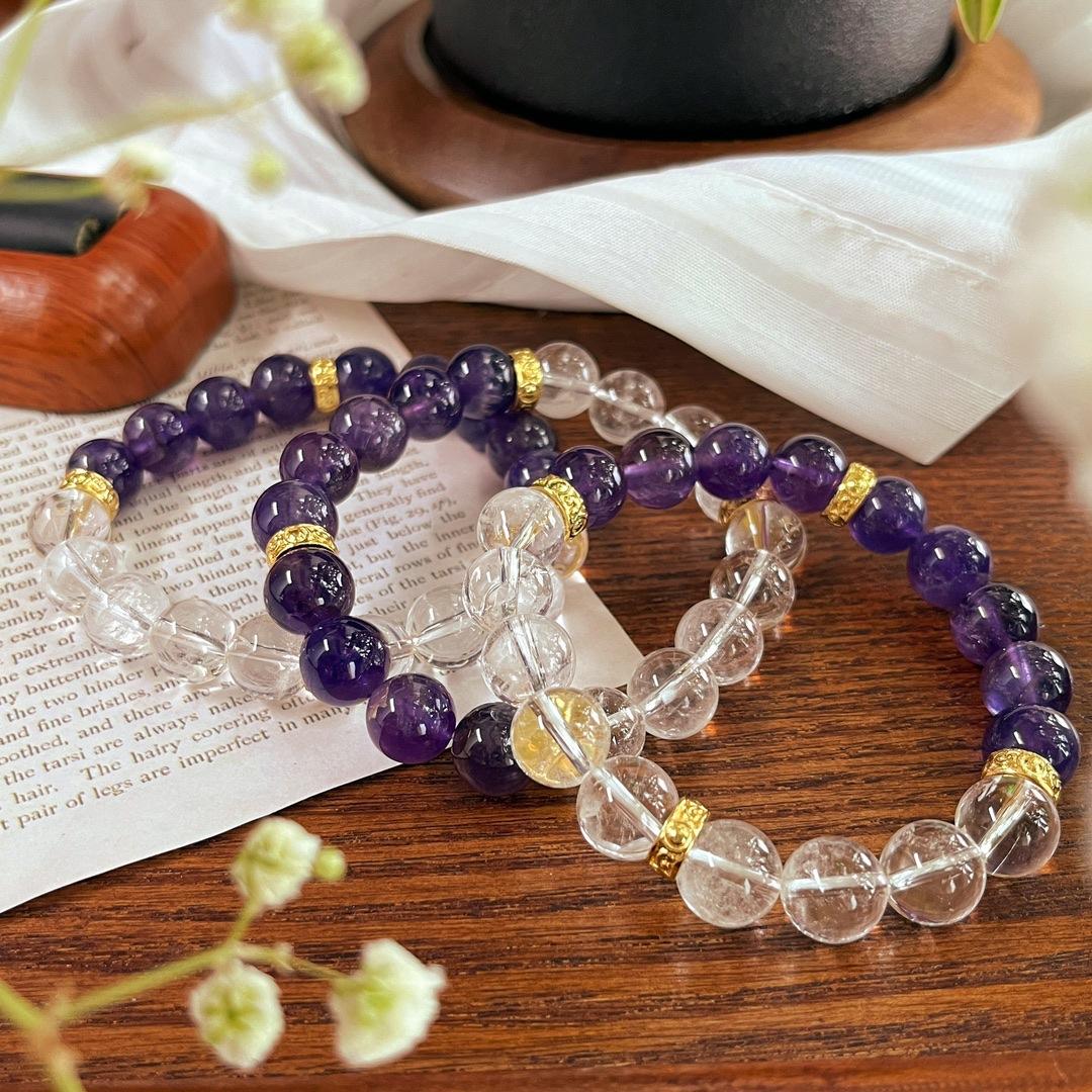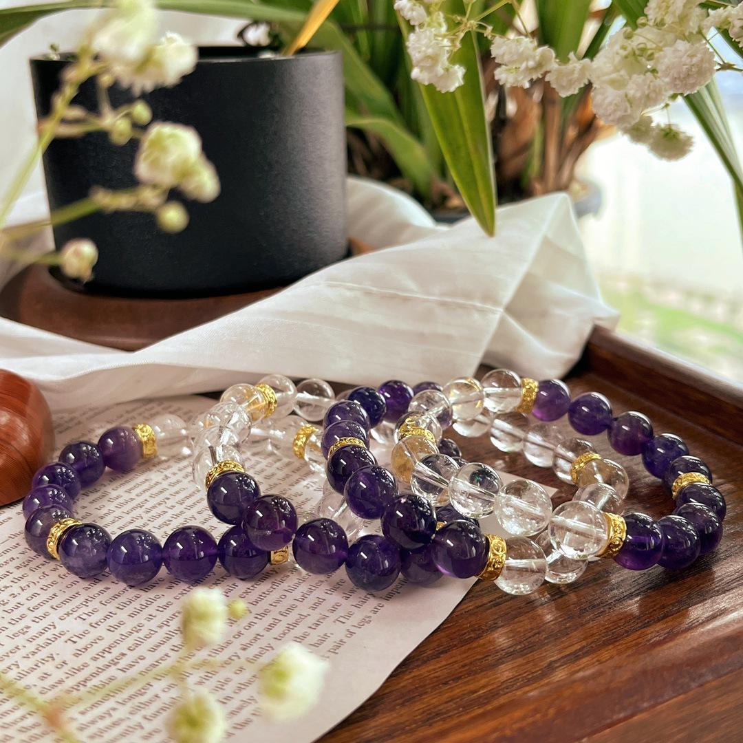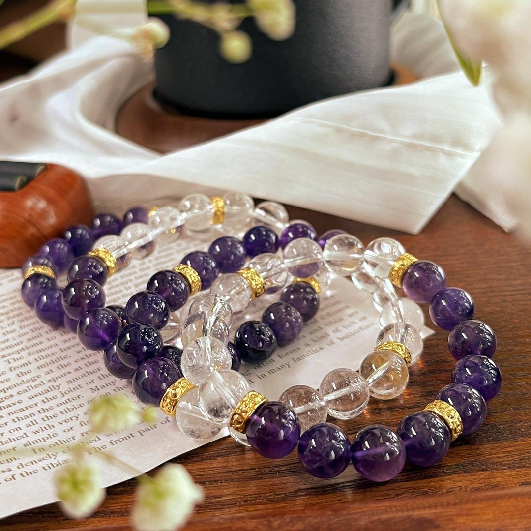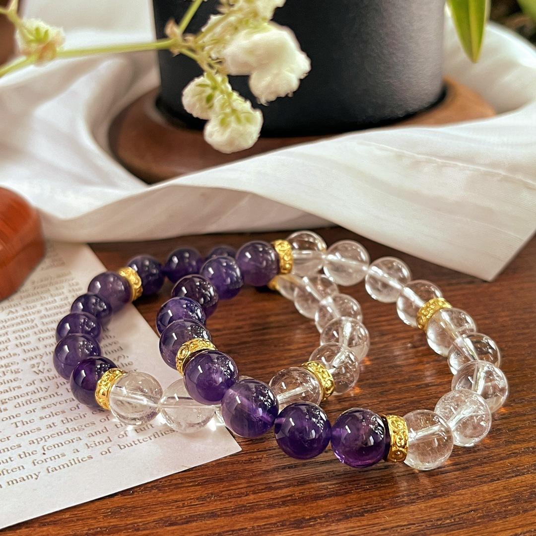 Pulseira Pulseira de Cristal Branco Natural 10mm Ametista Natural