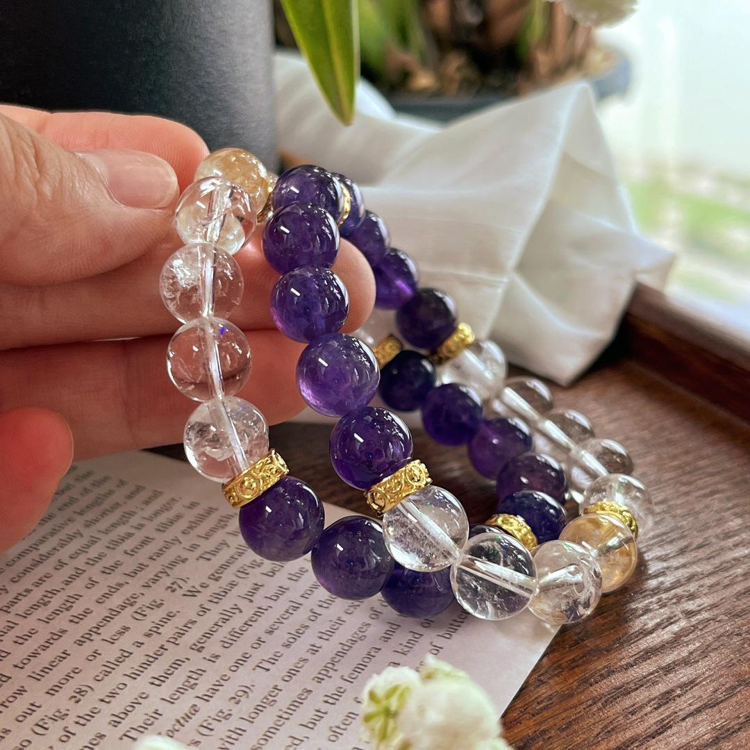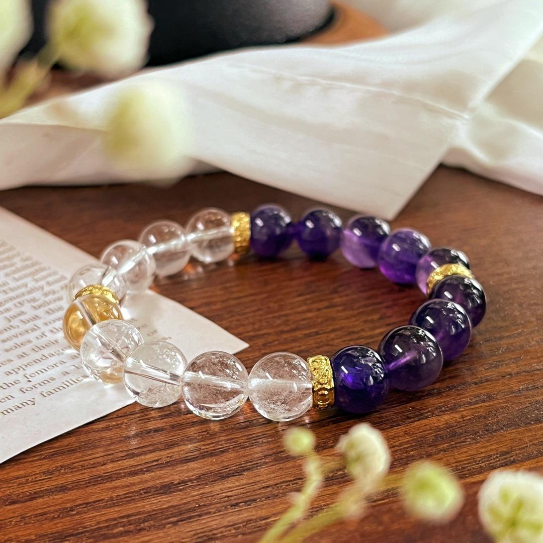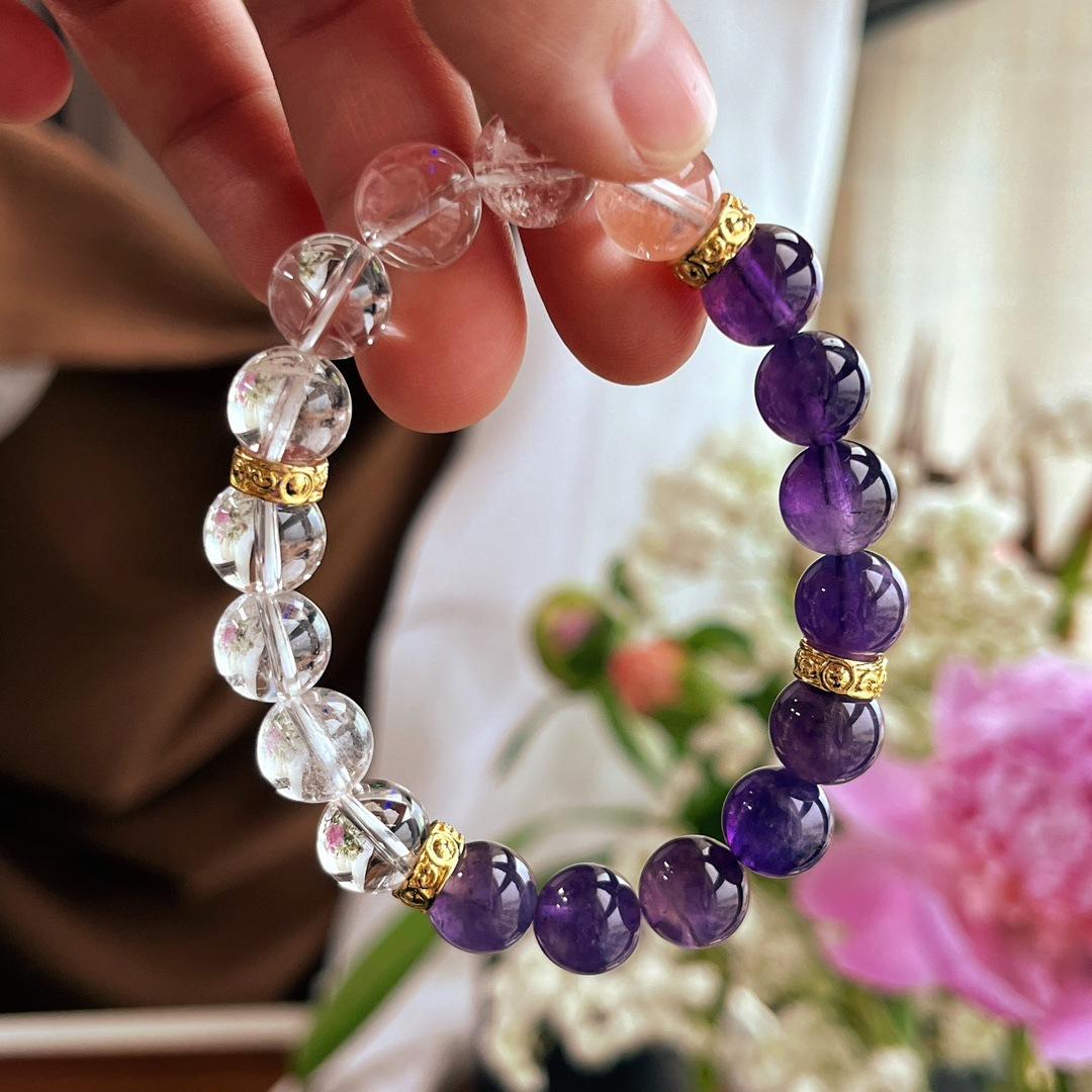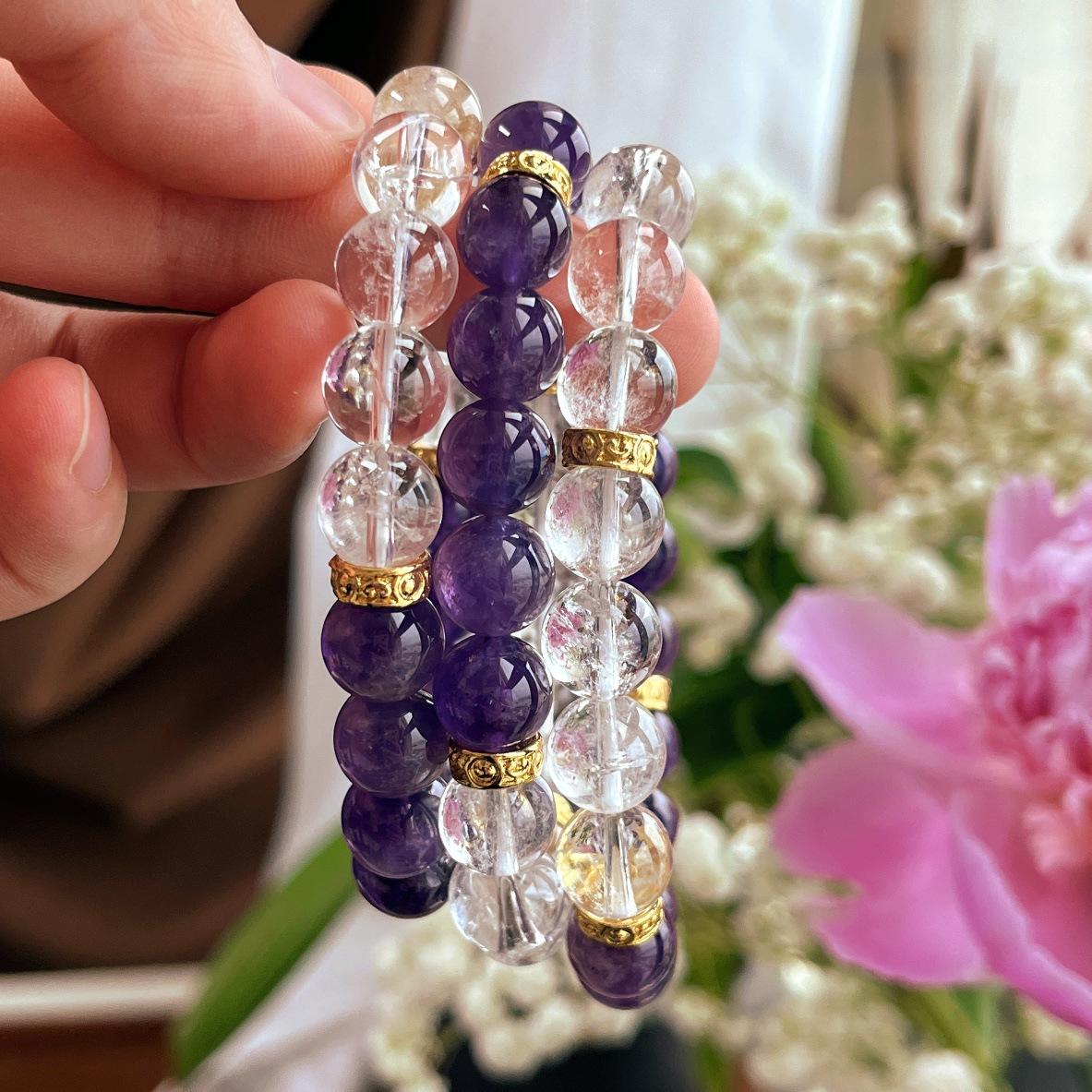 Pulseira Pulseira de Cristal Branco Natural 10mm Ametista Natural