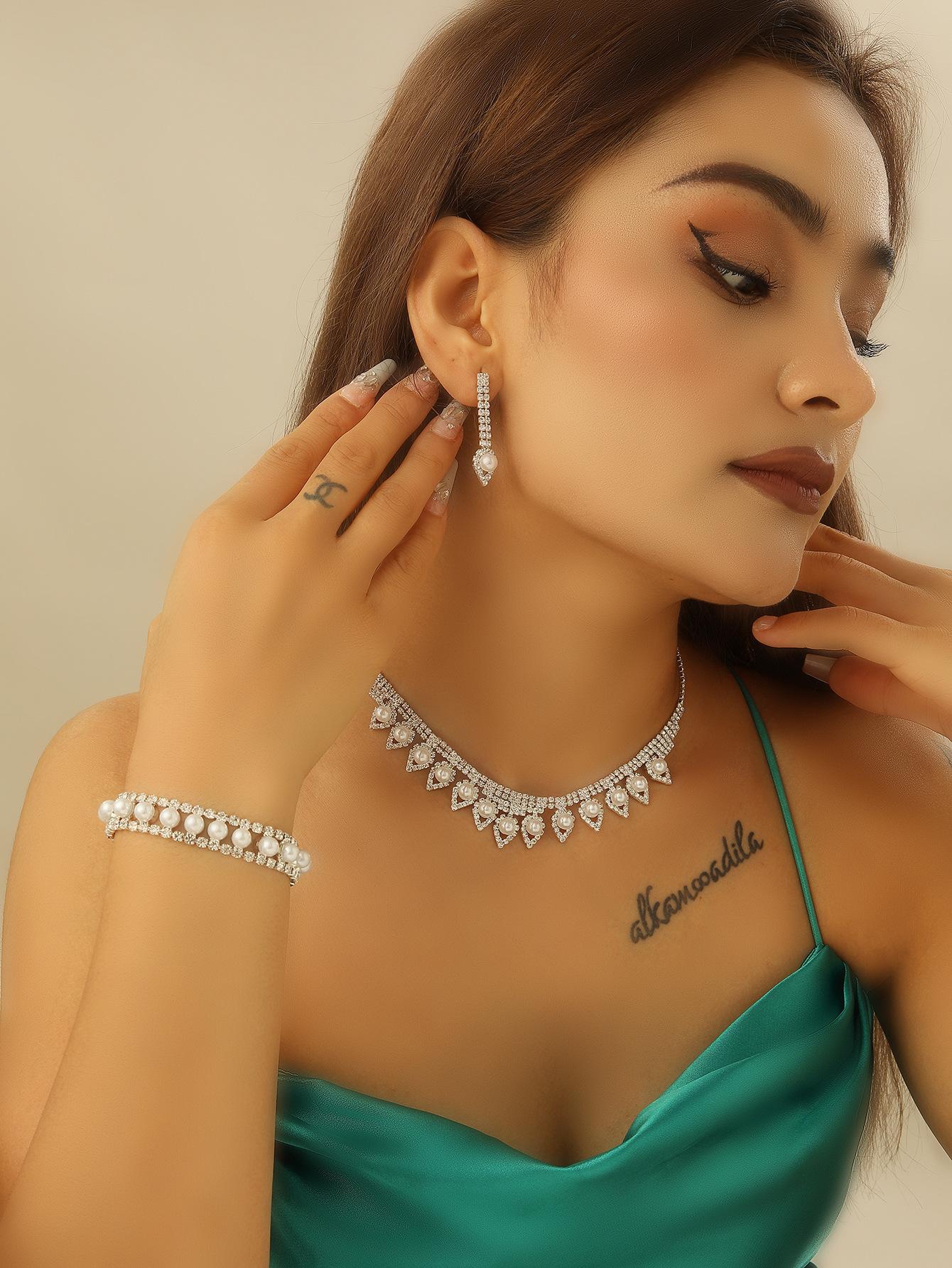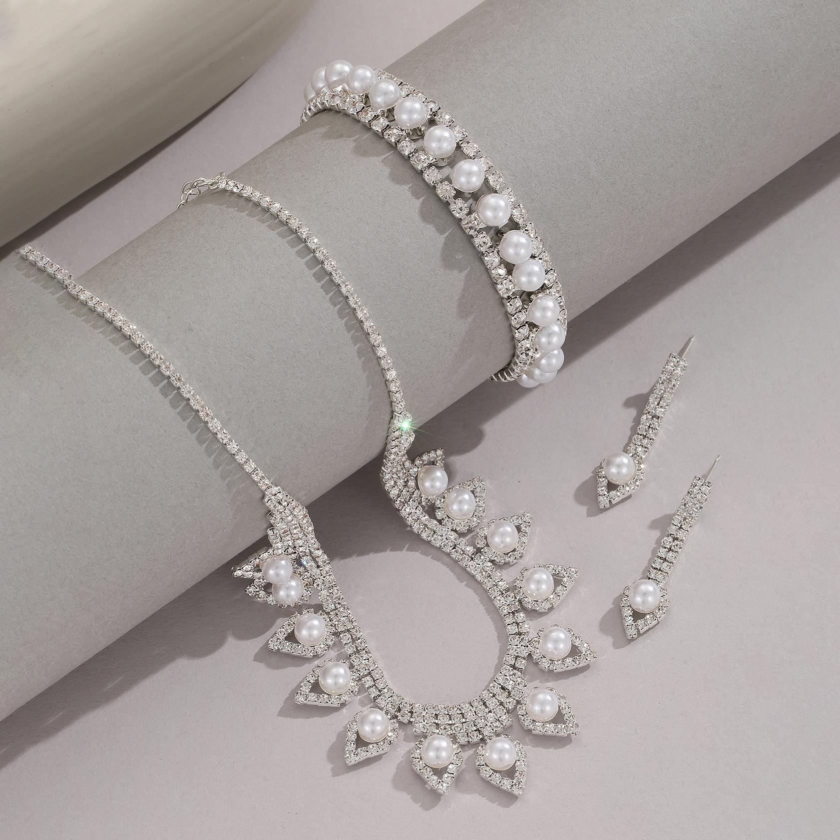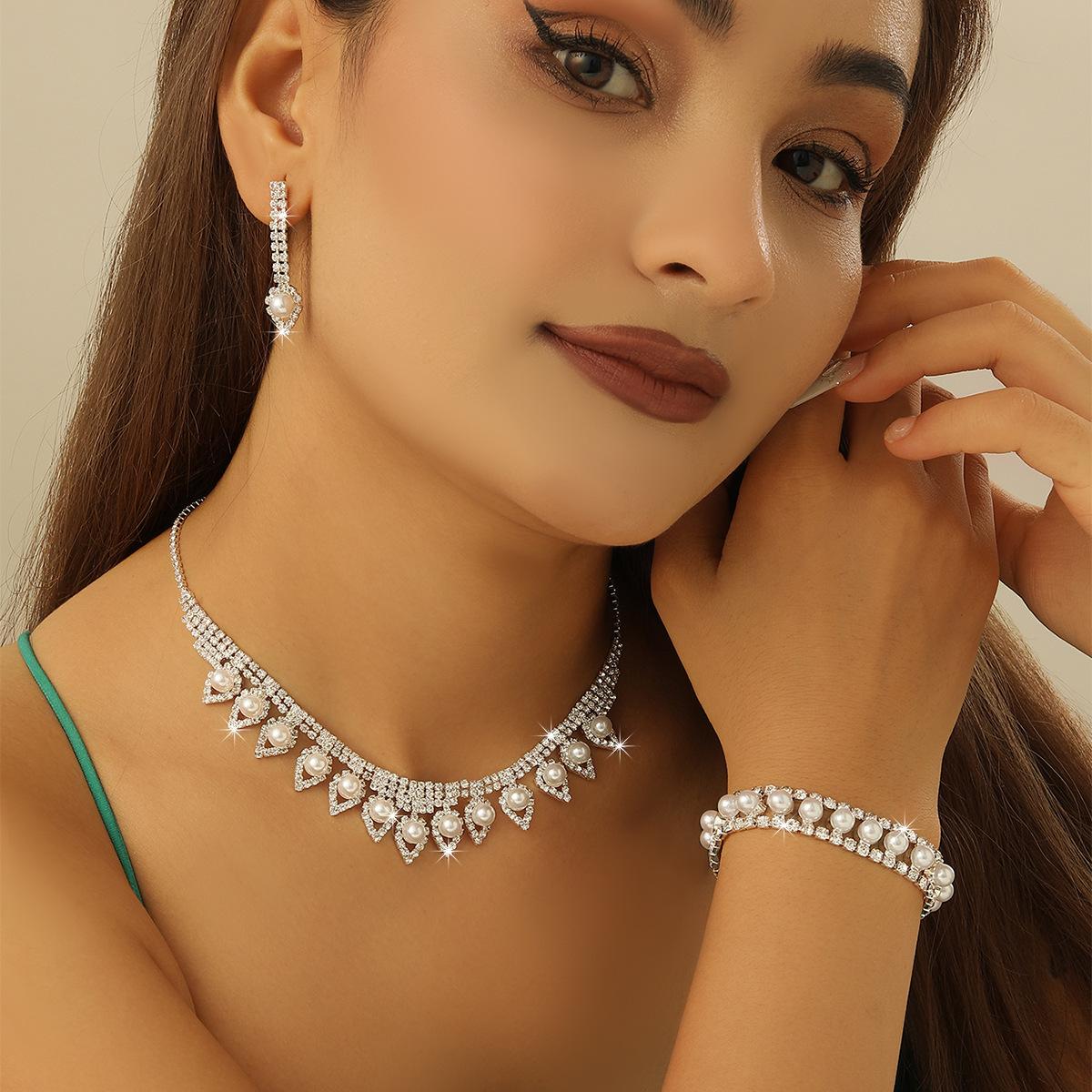 Compre Joias de noiva conjunto colar brincos de duas peças vestido de noite de casamento acessórios de casamento cadeia feminina europeu e americano novo estilo no atacado no Joom.pro