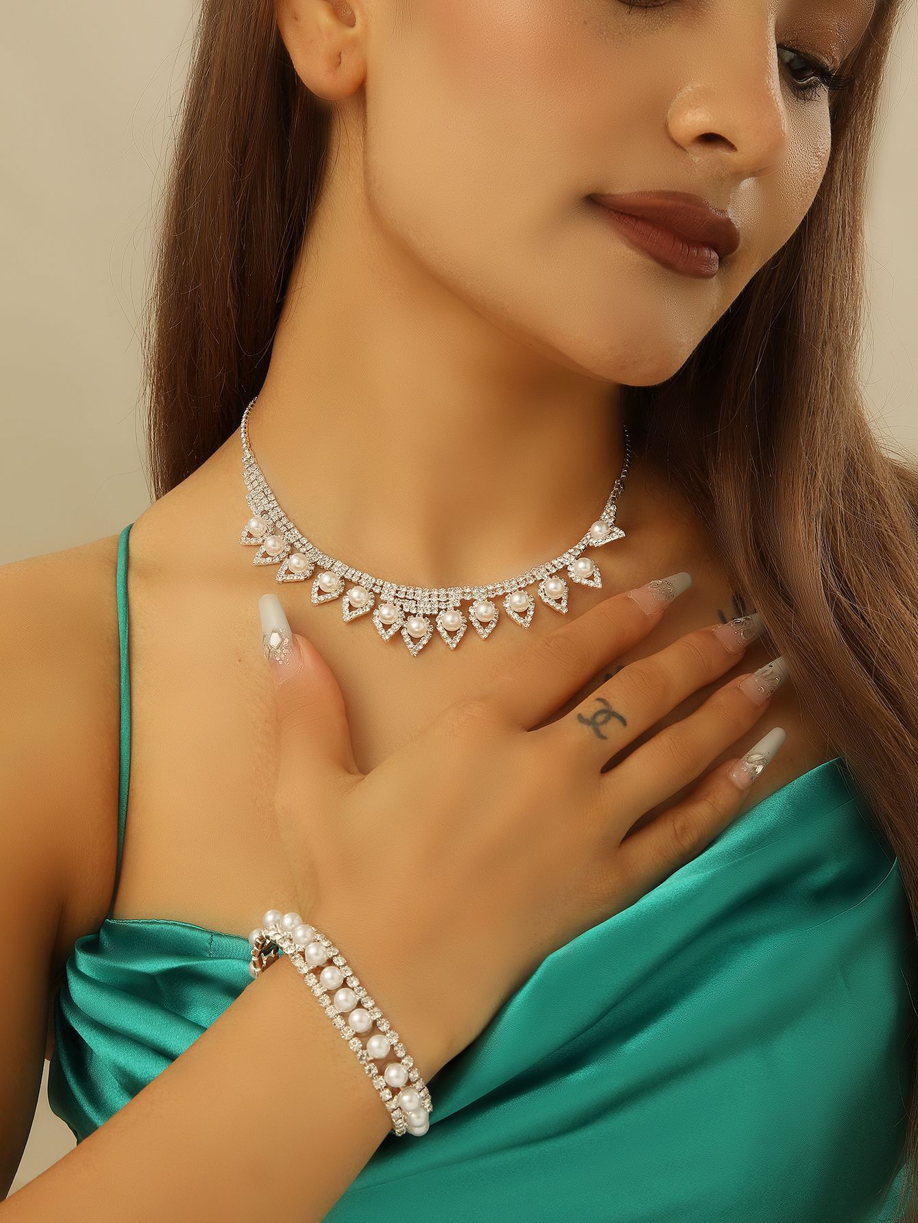 Joias de noiva conjunto colar brincos de duas peças vestido de noite de casamento acessórios de casamento cadeia feminina europeu e americano novo estilo