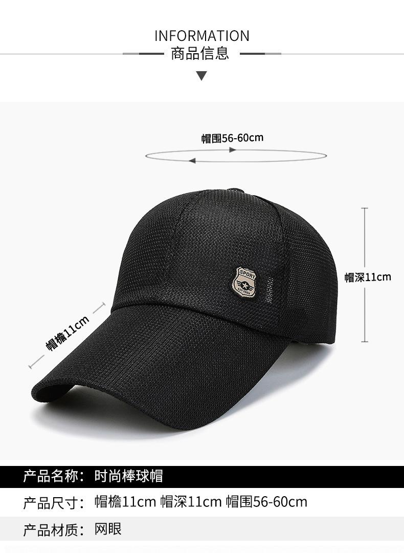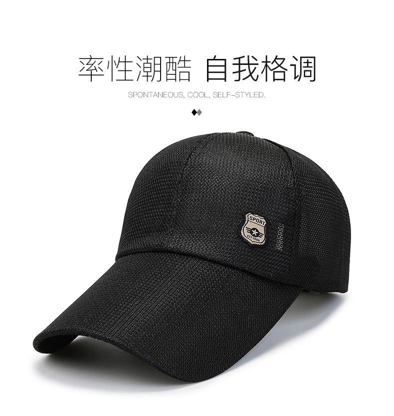 Chapéu Masculino Verão Longo Brim Malha Respirável Beisebol Cap Estilo Coreano Moda ao ar livre casual Cap Sun Shade Cap