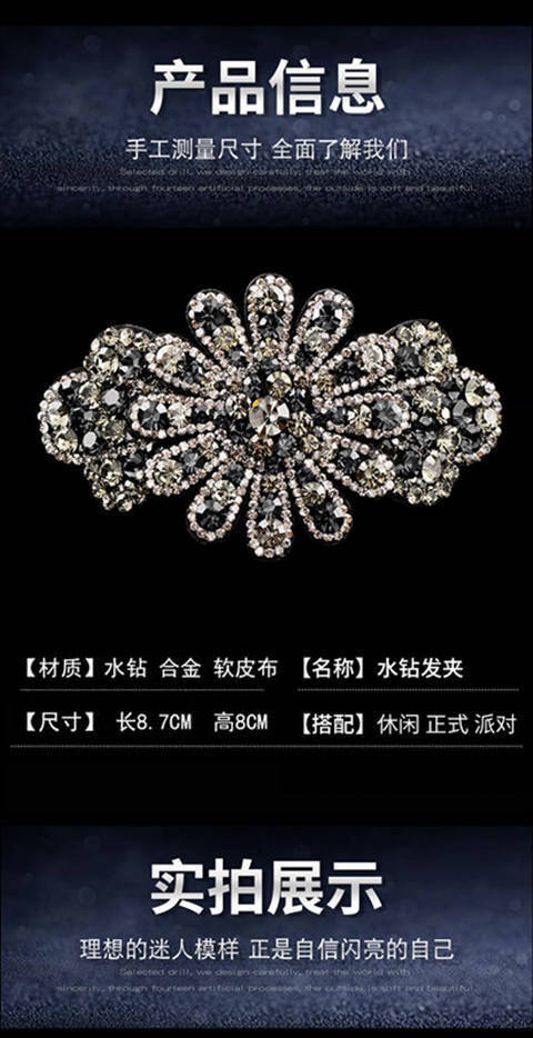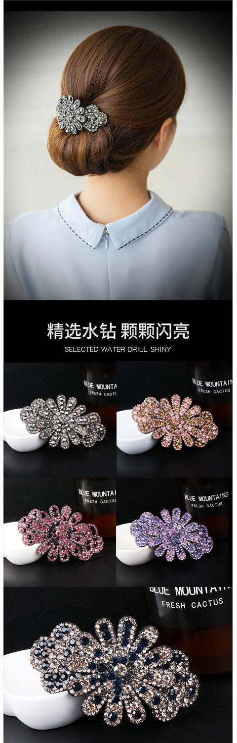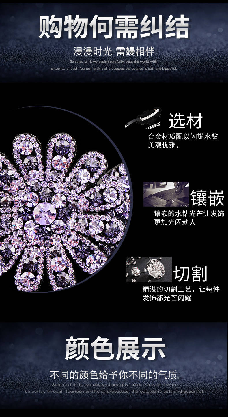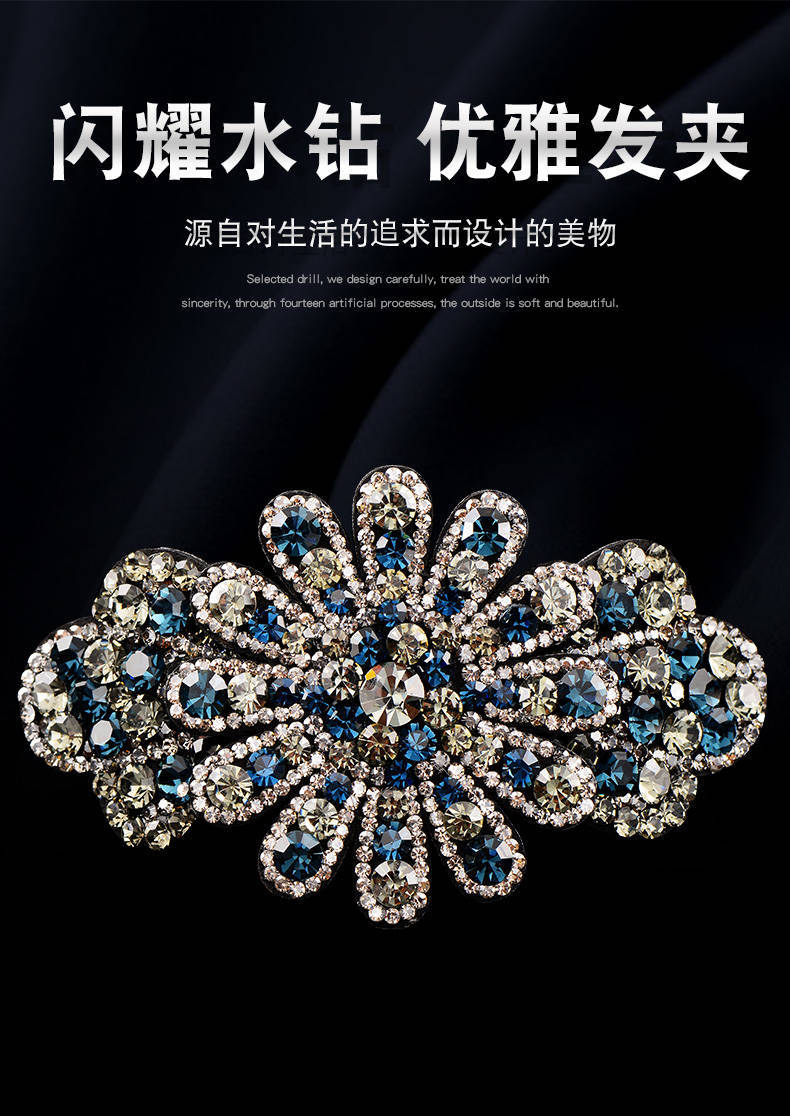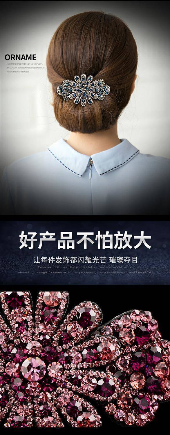 Grampo de Cabelo de Strass para a Parte de Trás da Cabeça Coreano com Diamante Presilha de Topo de Cabelo Acessório de Cabeça Elegante Presilha de Mola Grande Acessórios de Cabelo Feminino Adulto