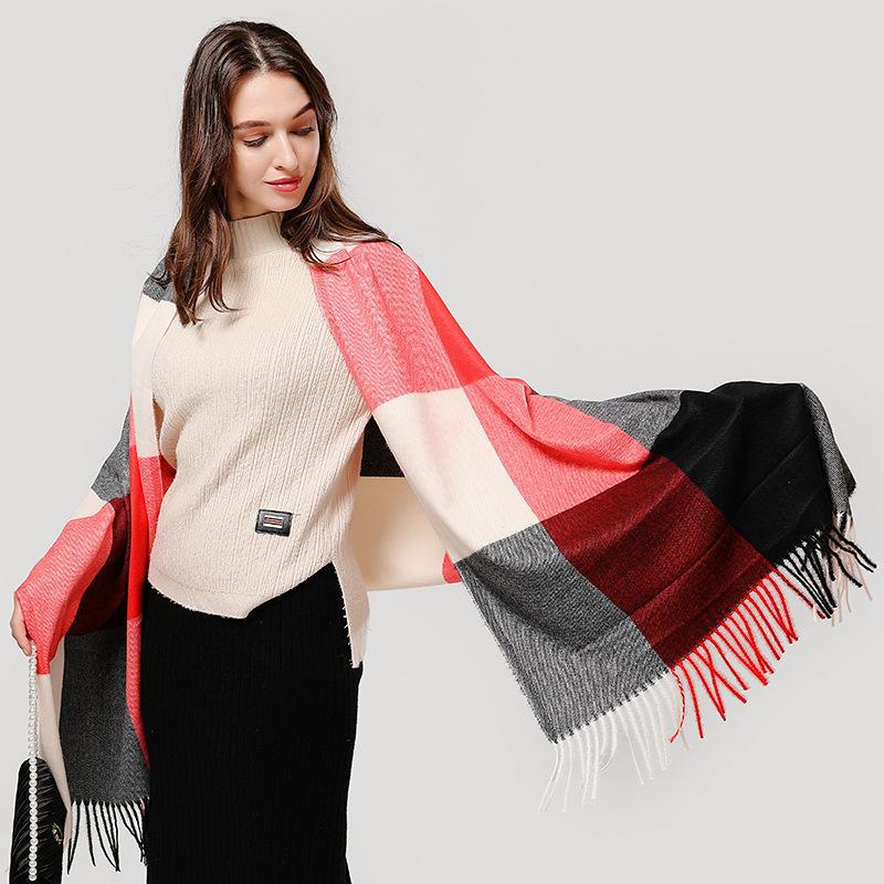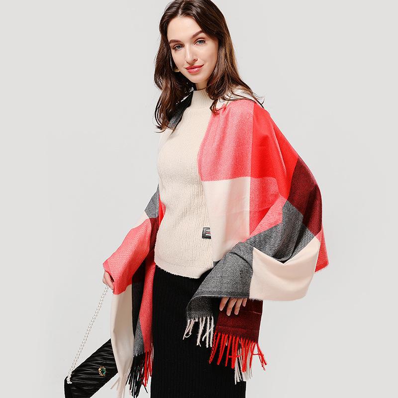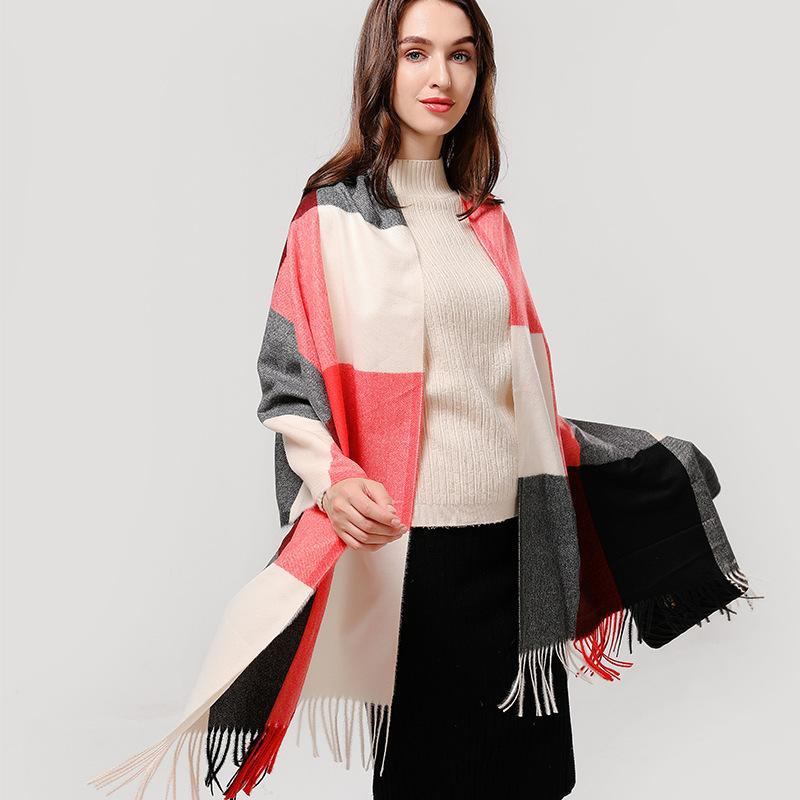 Clássico Xadrez Faux Cashmere Cachecol Xale