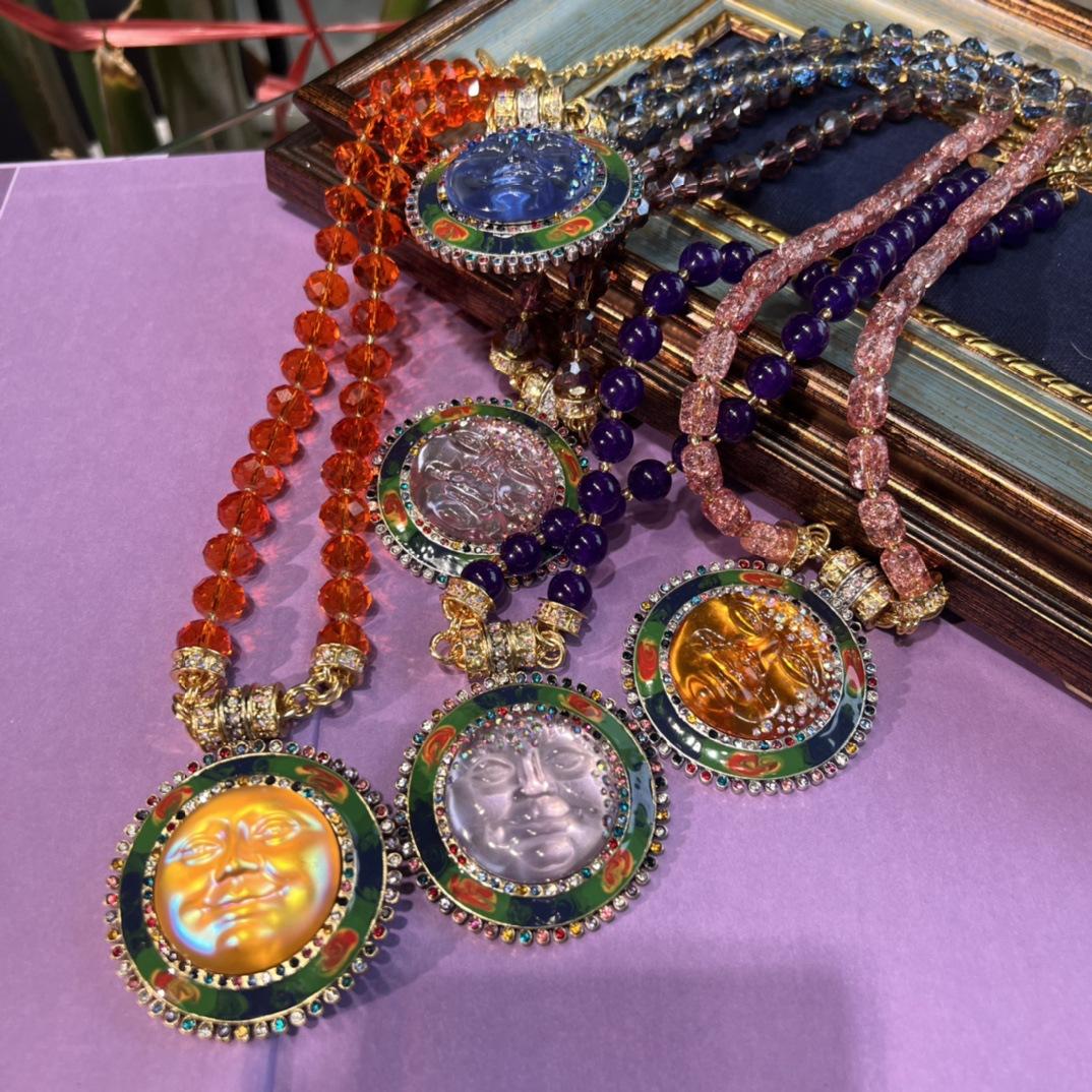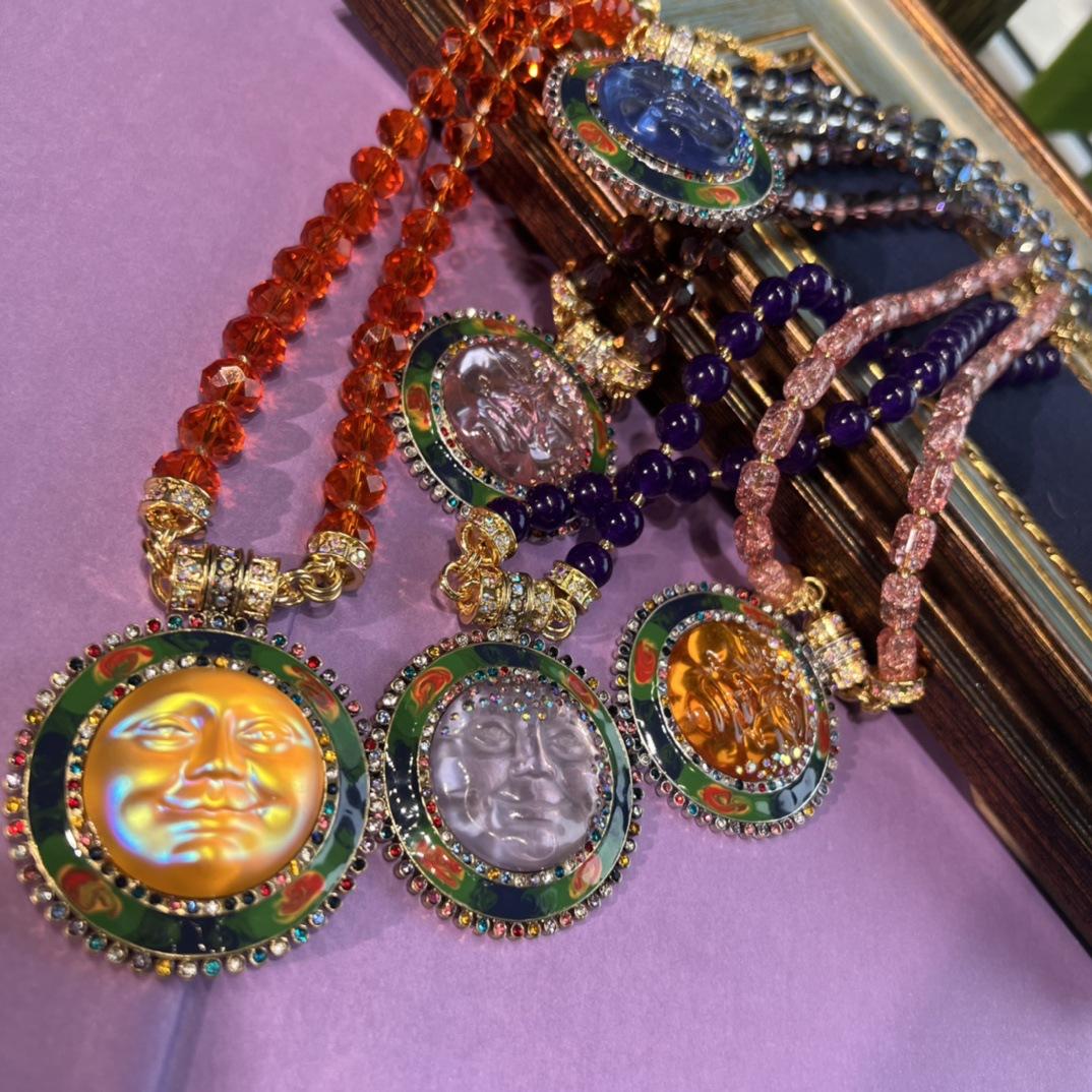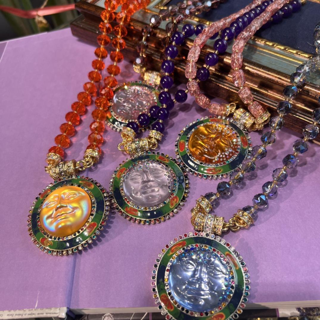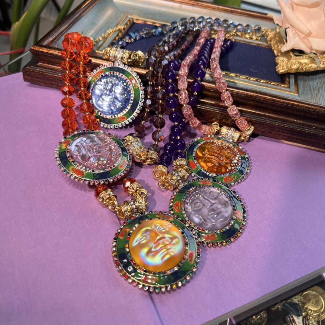 [Mi Nan] Mid-ancient vintage retro moda elegante personalidade Moonstone Moen rosto esmalte ímã pingente