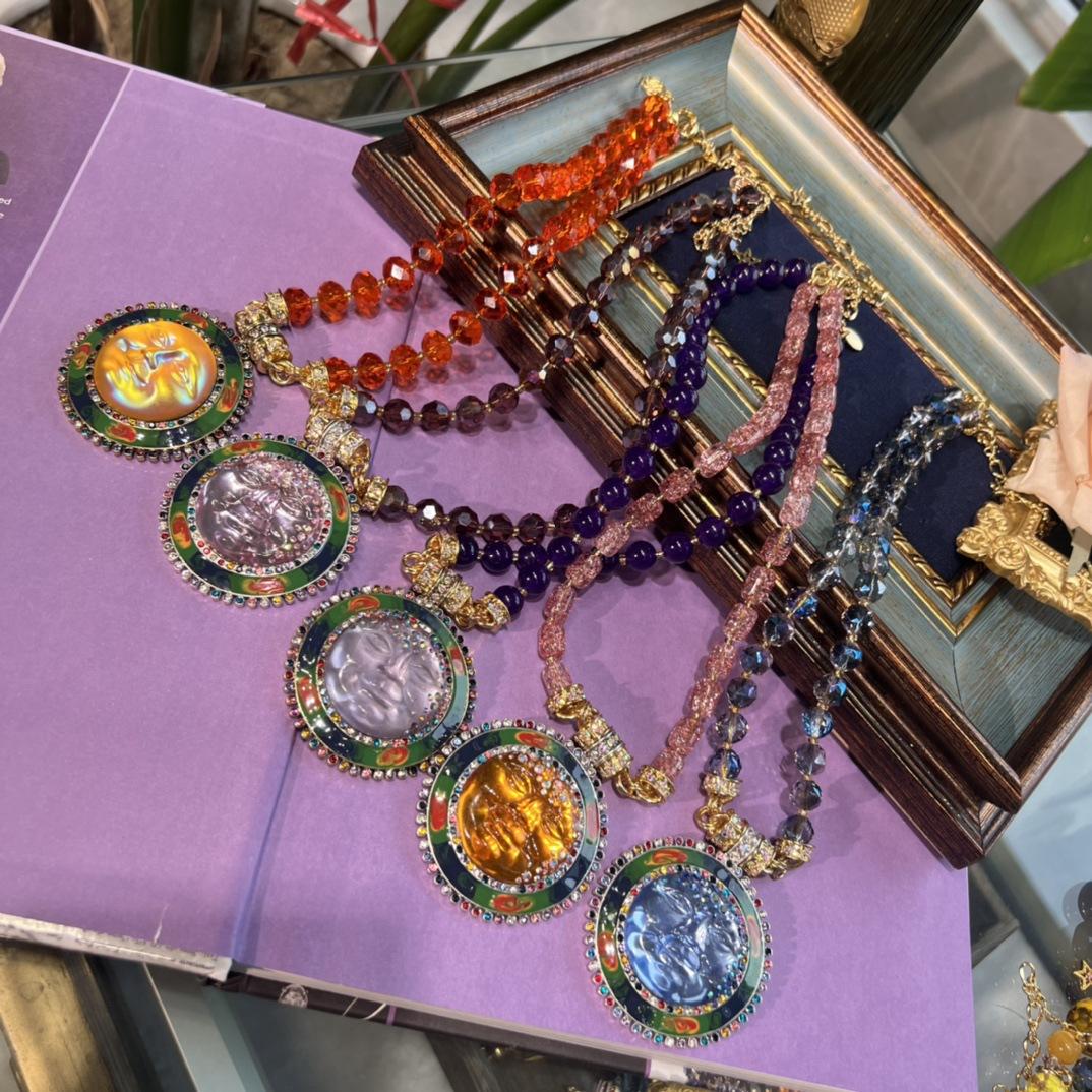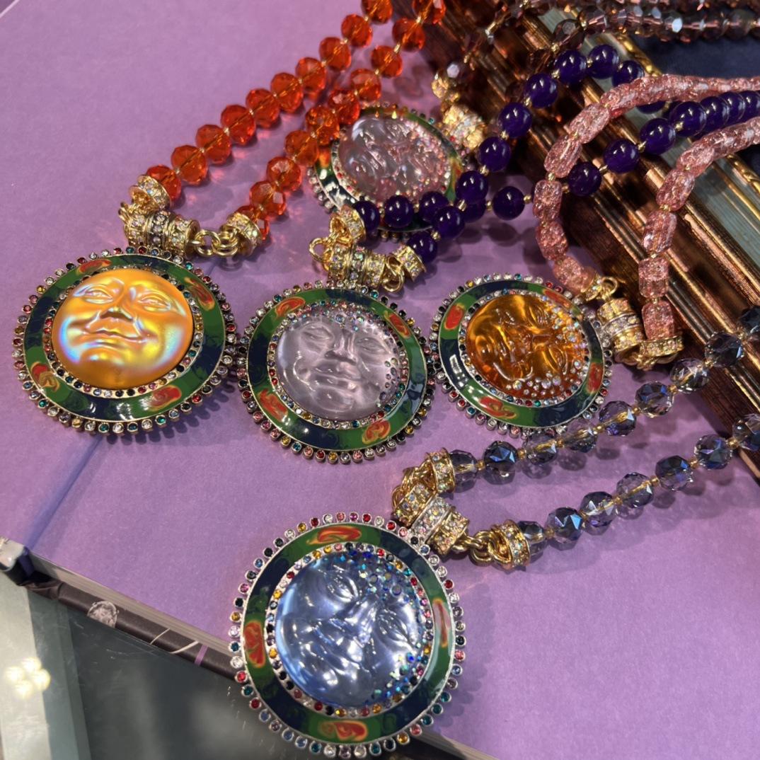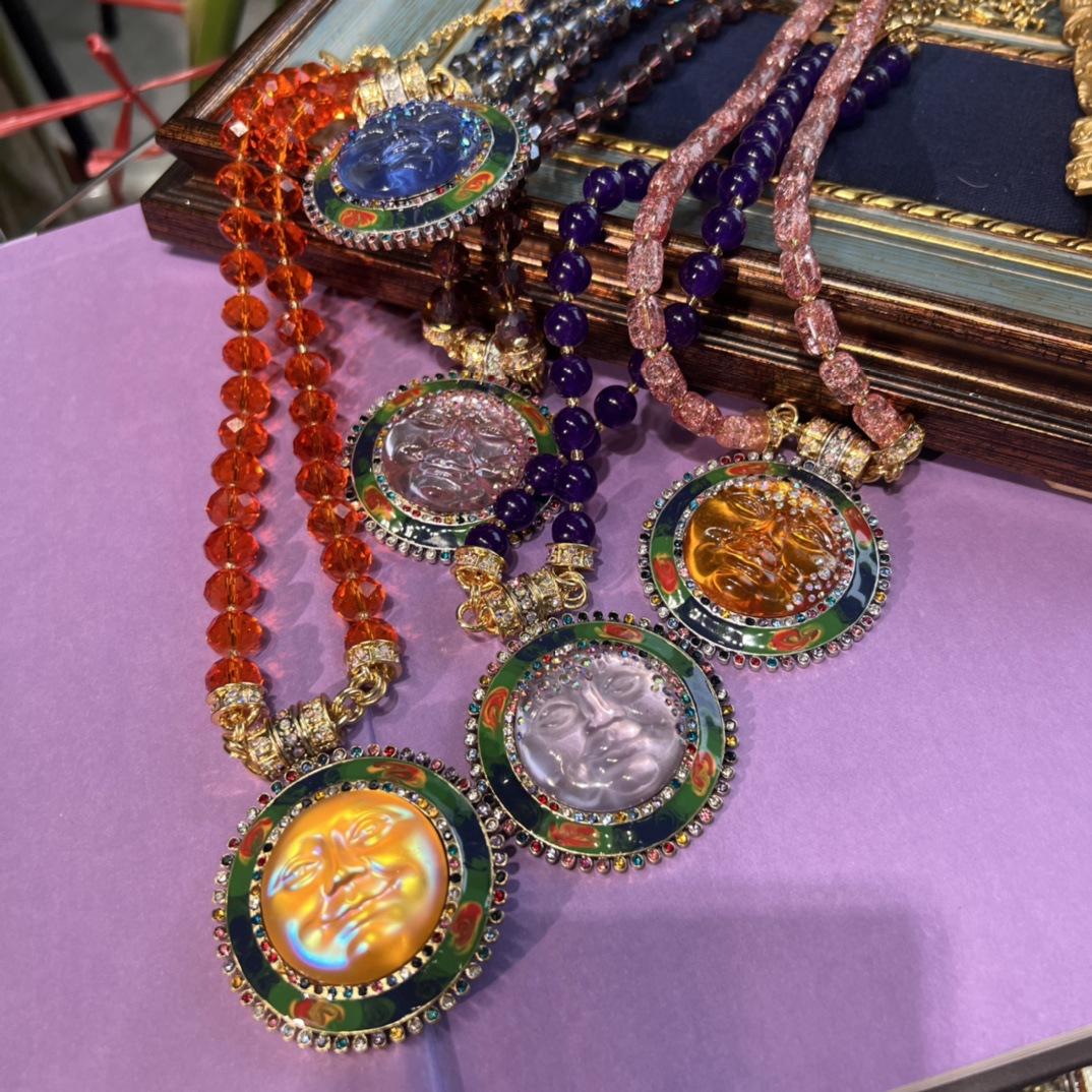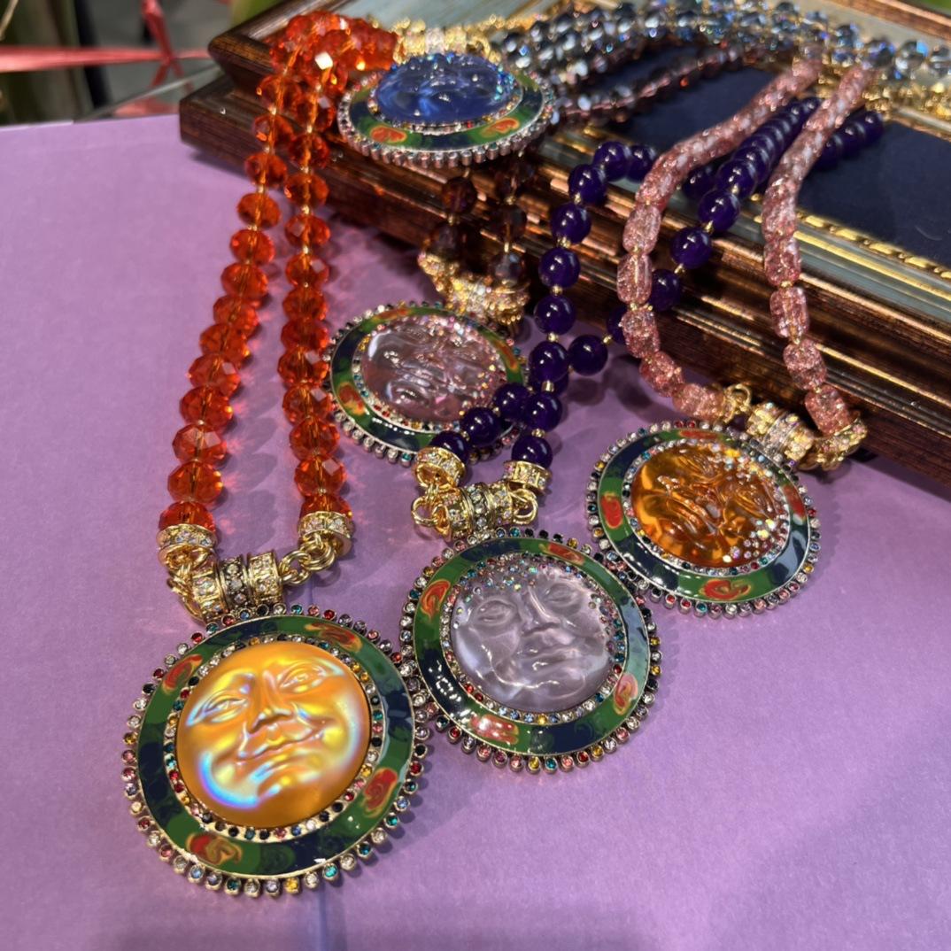 [Mi Nan] Mid-ancient vintage retro moda elegante personalidade Moonstone Moen rosto esmalte ímã pingente