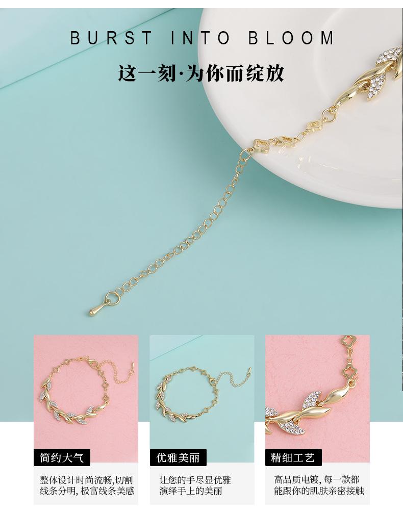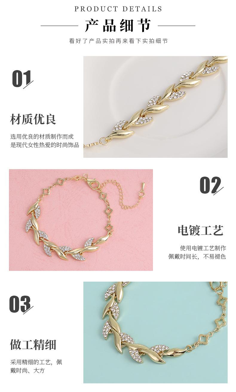 Amazon AliExpress Transfronteiriço Quente Pulseira Folha Dourada Pulseira Diamante Pulseira Feminina Venda Direta da Fábrica