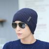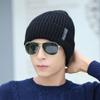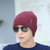 Atacado de fábrica inverno coreano listrado lã dos homens chapéu de malha com veludo proteção da orelha chapéu quente