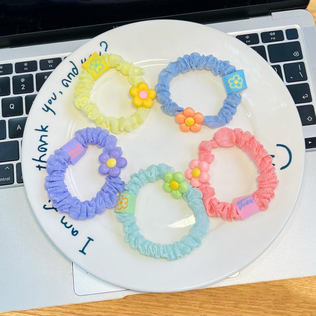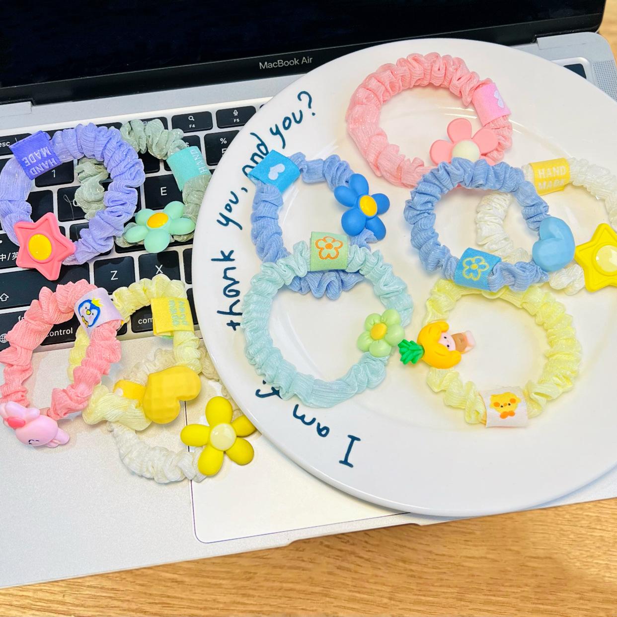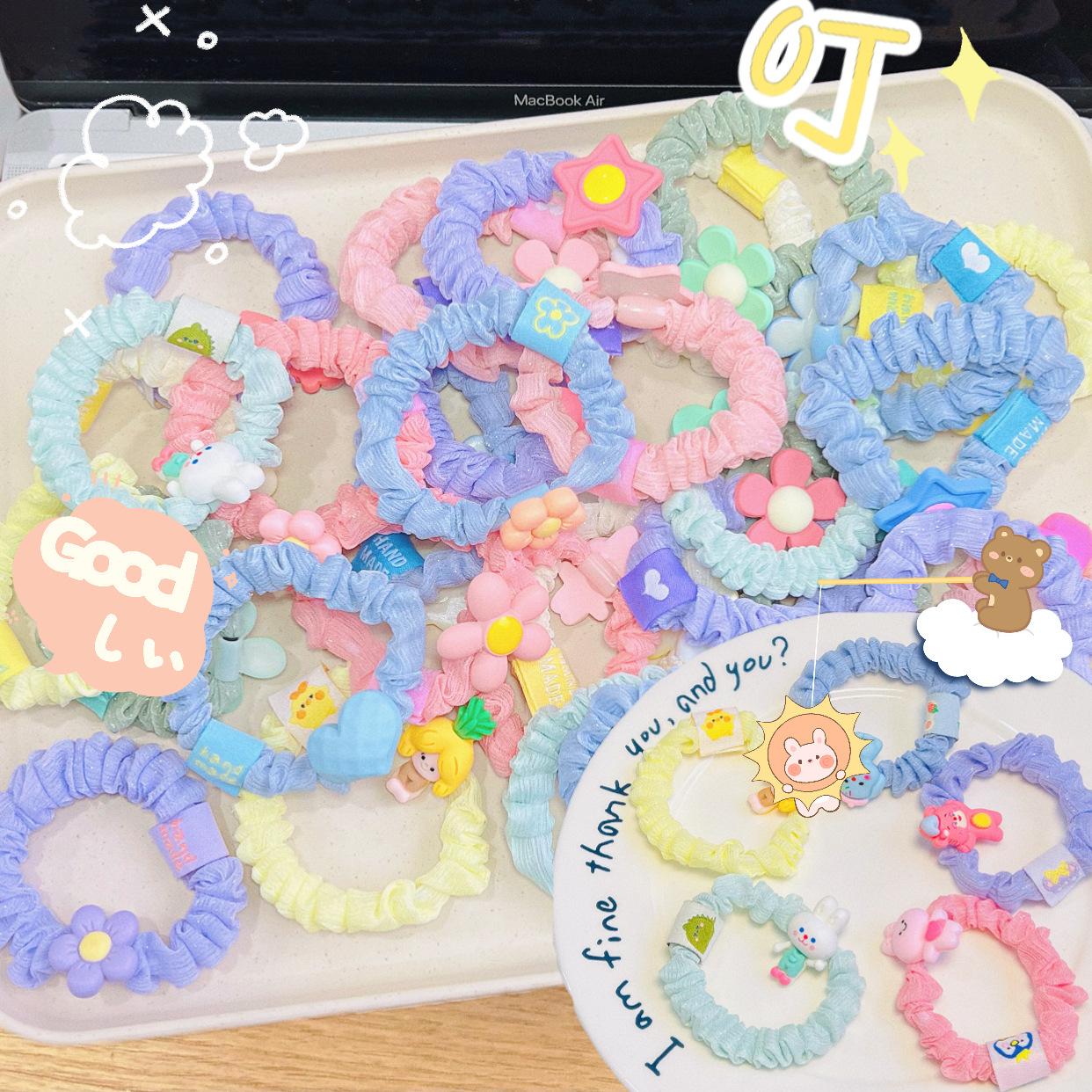 Acessórios de cabelo infantil doce flor tecido intestino grosso anel de cabelo rabo de cavalo elástico alto elástico cor doce dos desenhos animados anel de cabelo da menina