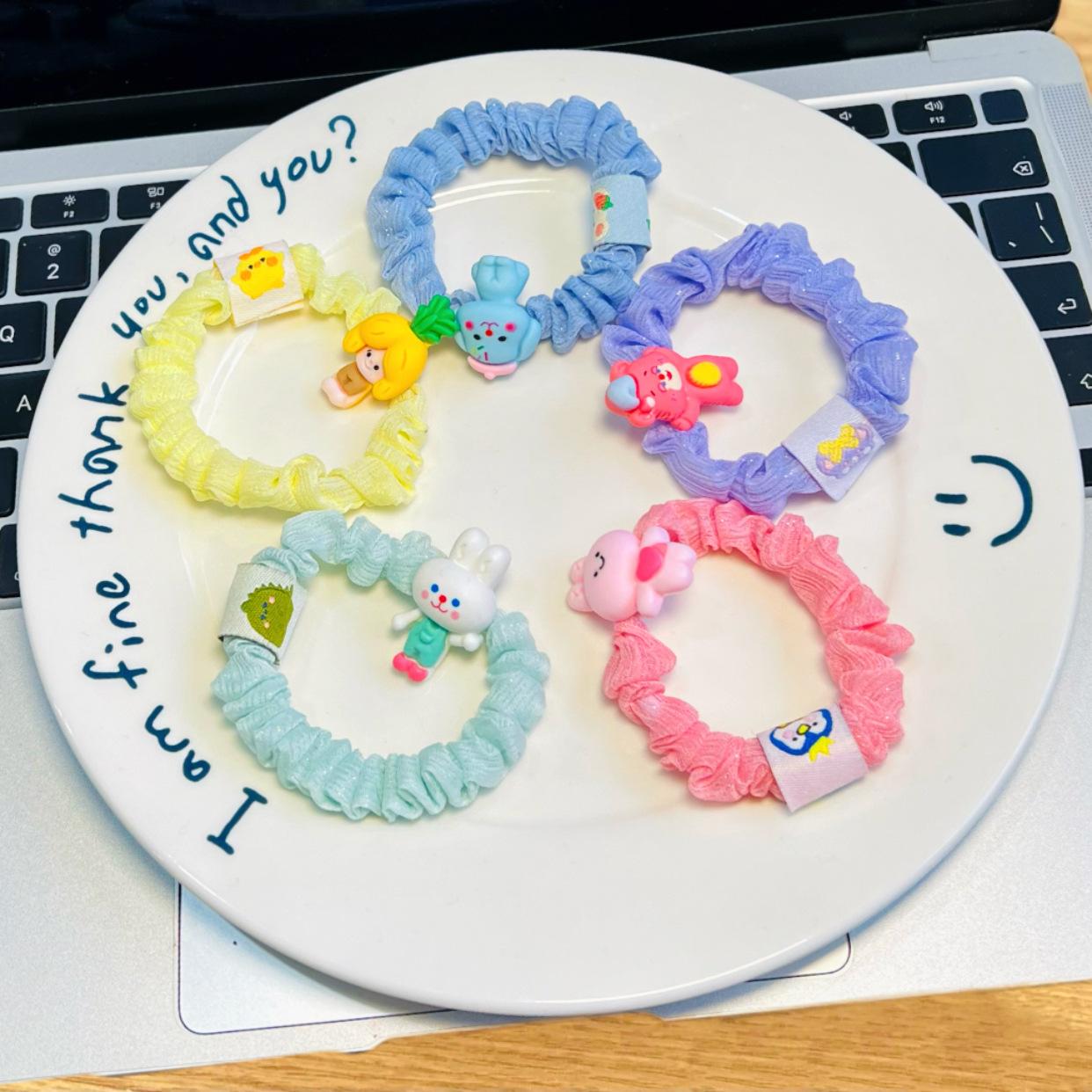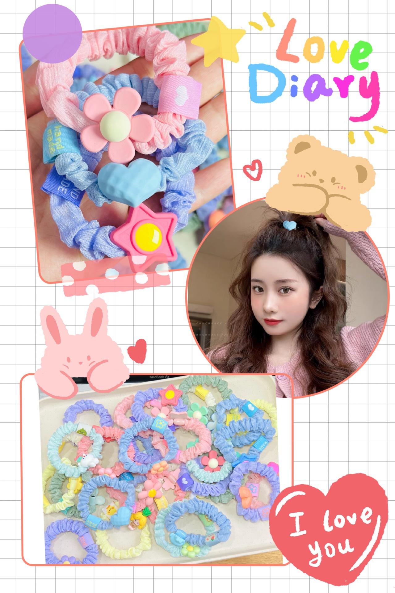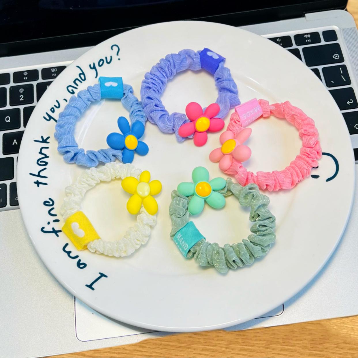 Acessórios de cabelo infantil doce flor tecido intestino grosso anel de cabelo rabo de cavalo elástico alto elástico cor doce dos desenhos animados anel de cabelo da menina