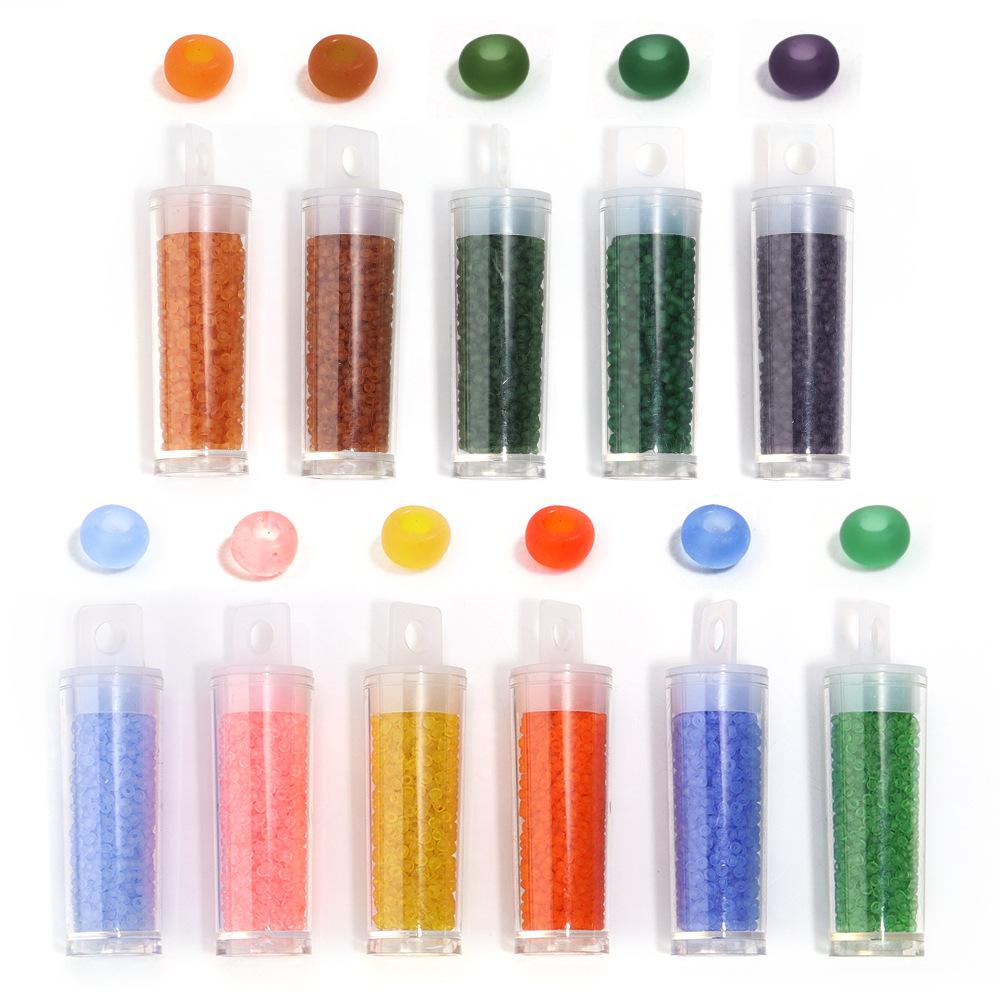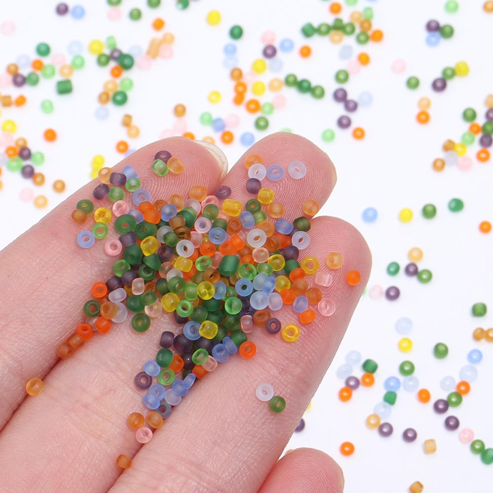Contas de arroz de vidro fosco ensacadas, diâmetro de cerca de 2 mm, diâmetro do furo de 0,8 mm (cerca de 50.800 contas), peso total das contas de cerca de 450 g Peso 50g(Cerca de 5650 peças) |