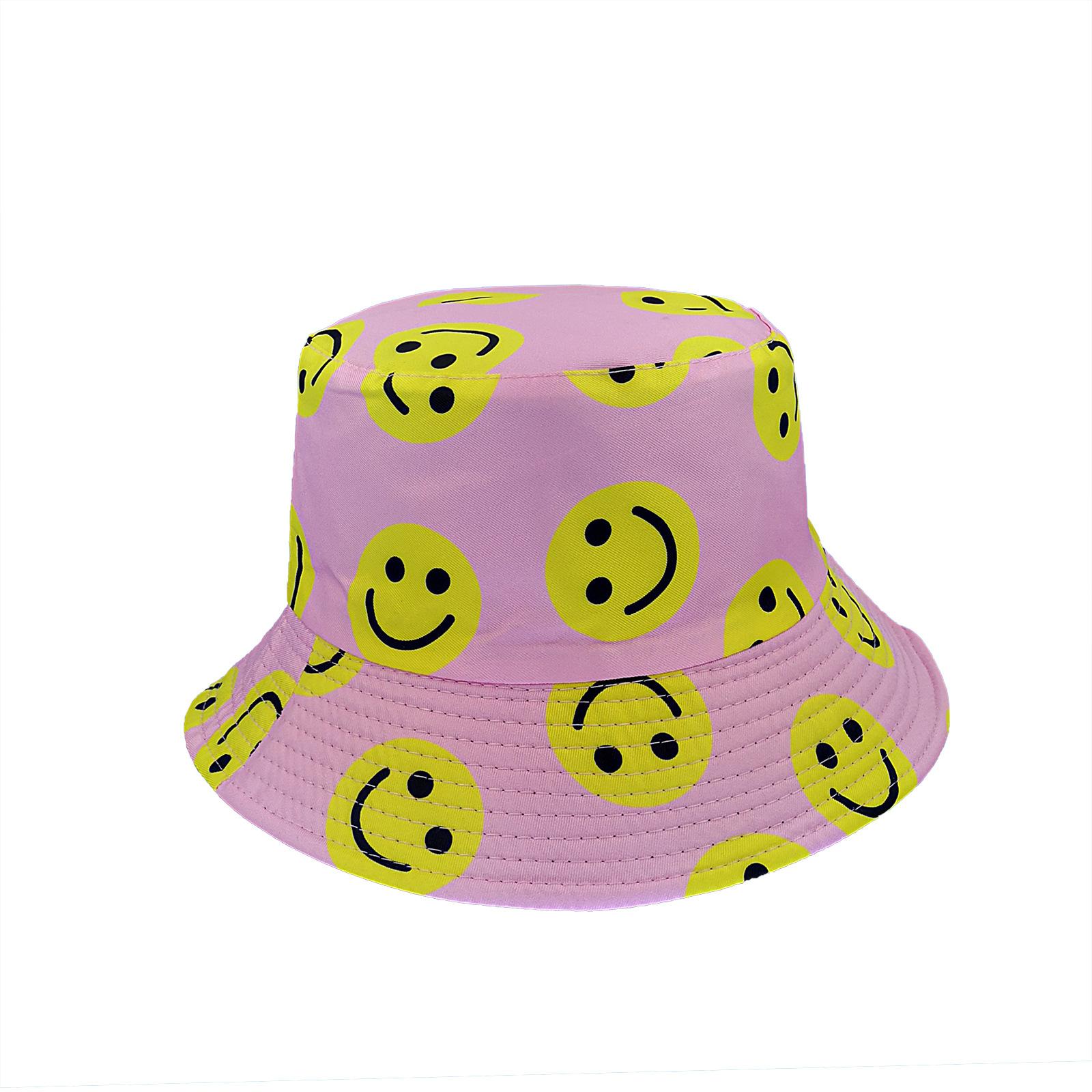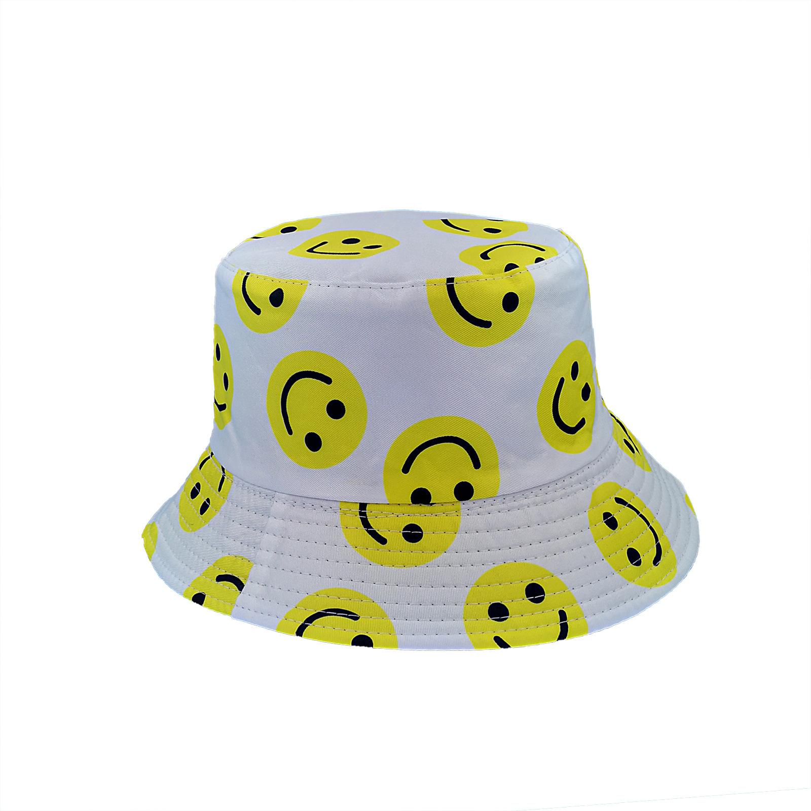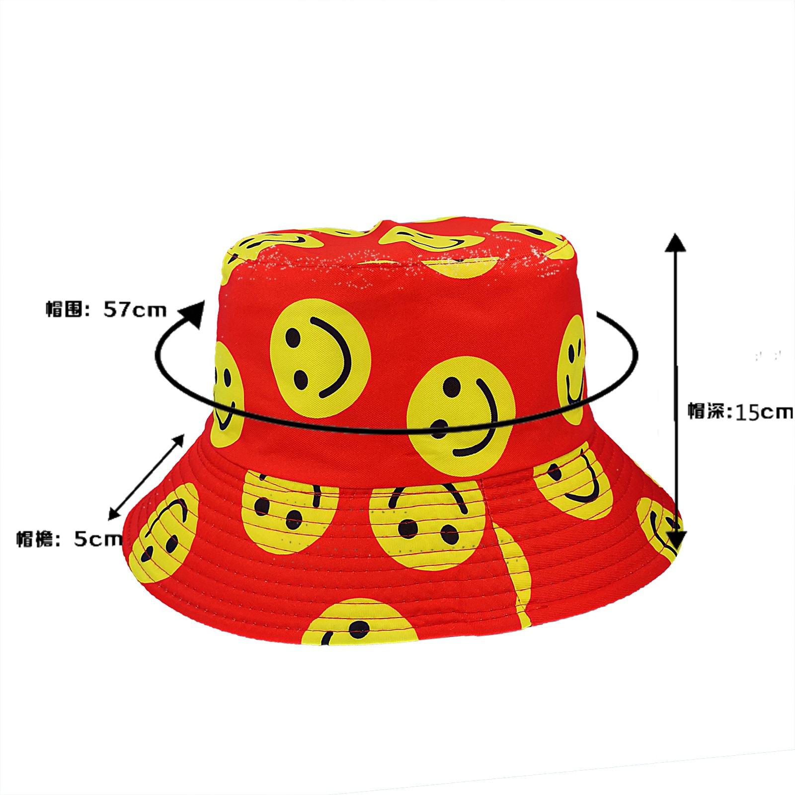 [Nome do Produto]:Comércio exterior primavera e verão novo smiley face impressão pescador chapéu feminino dupla face lazer sol bacia chapéu japonês e coreano moda chapéu masculino