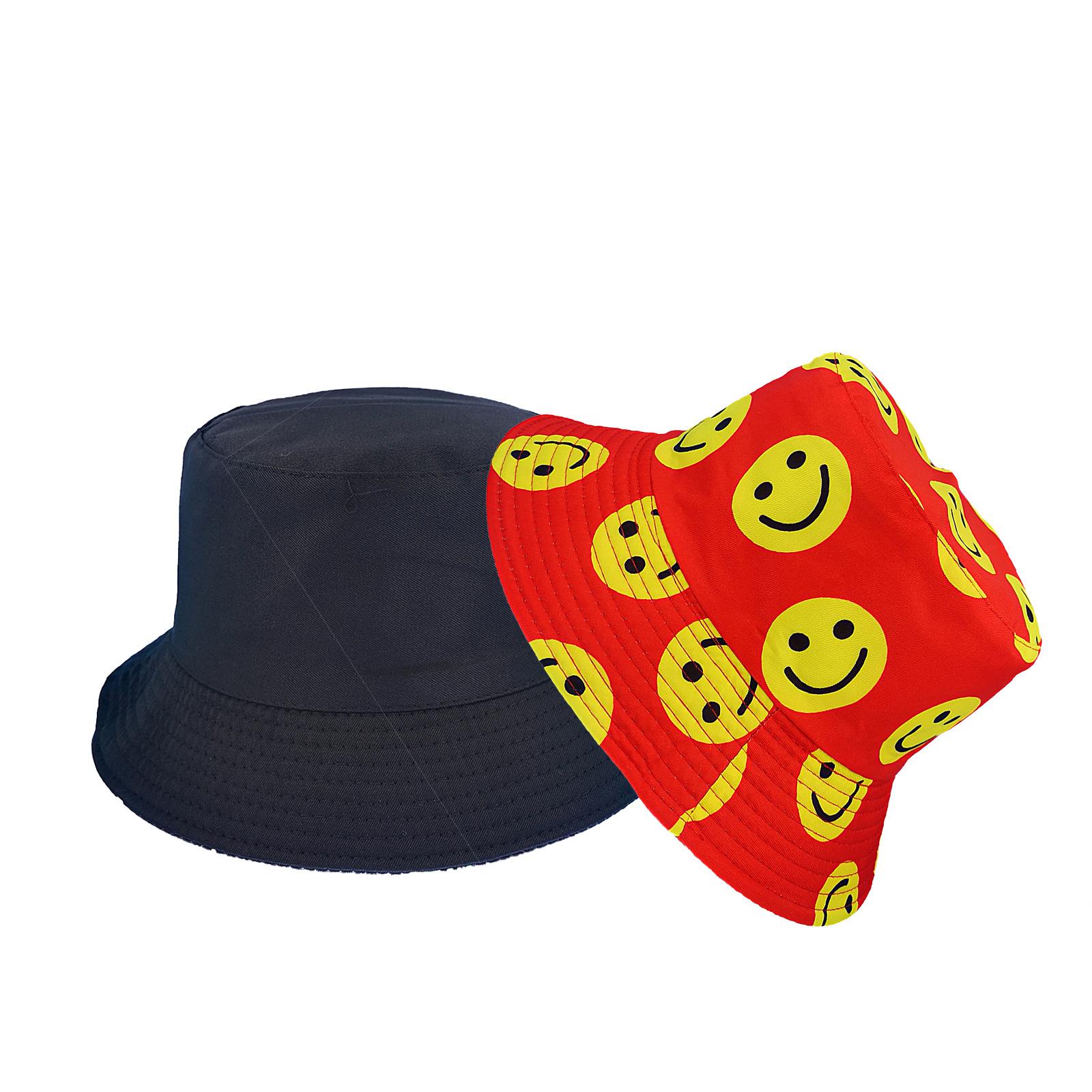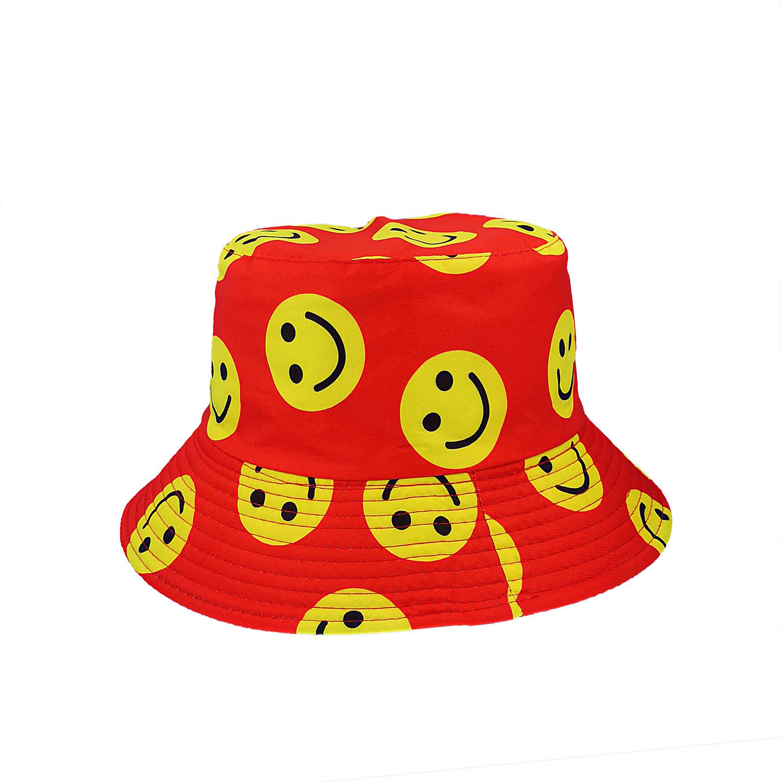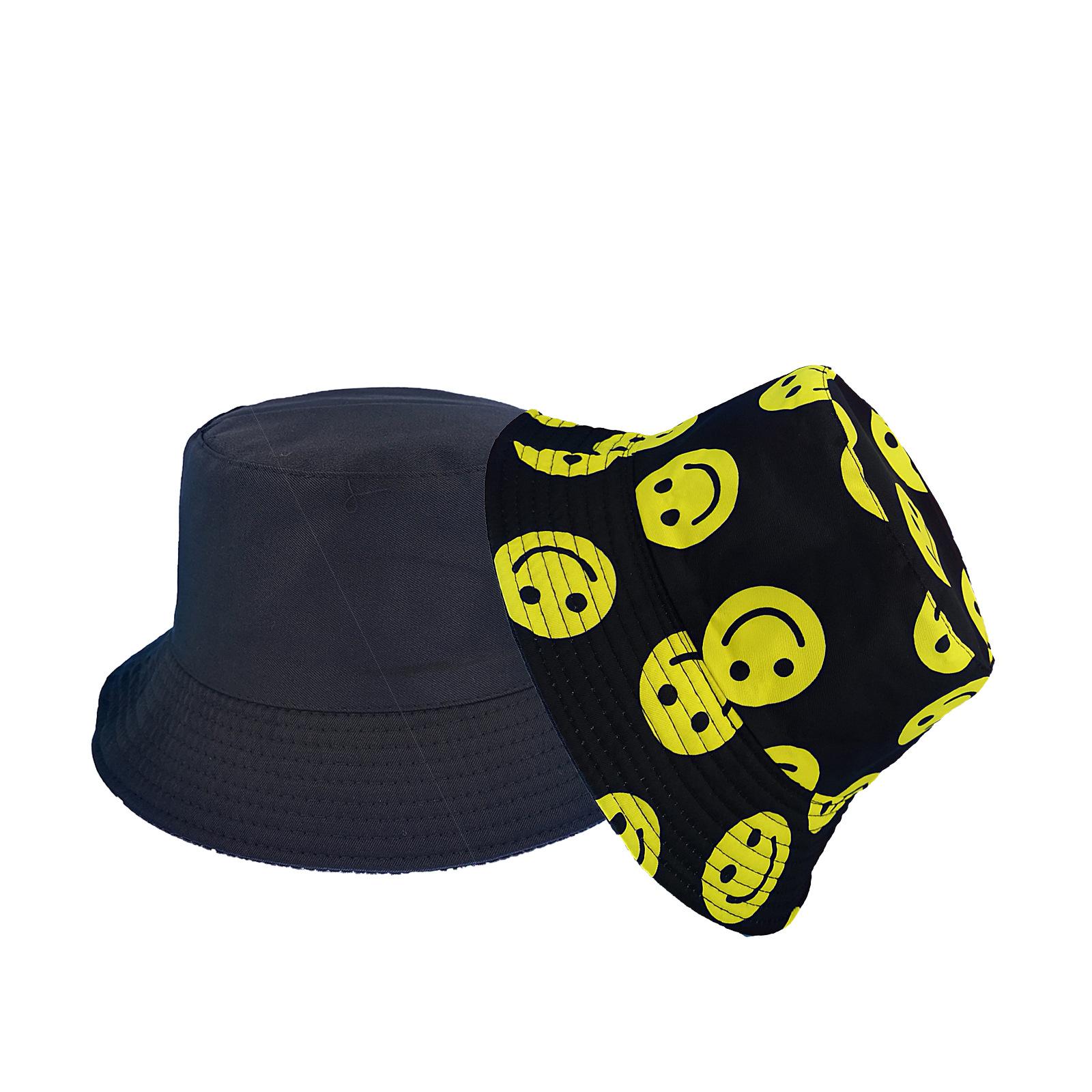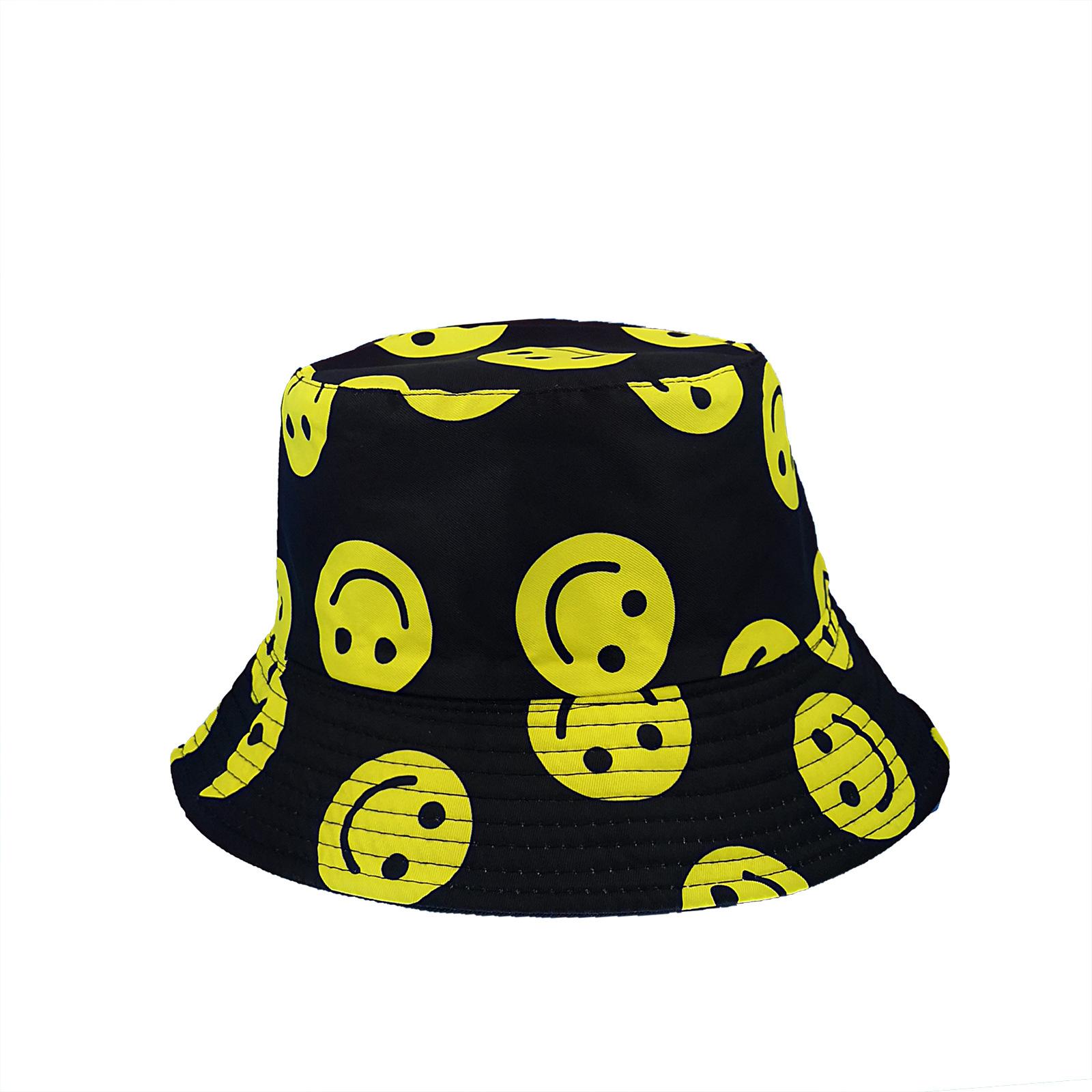[Nome do Produto]:Comércio exterior primavera e verão novo smiley face impressão pescador chapéu feminino dupla face lazer sol bacia chapéu japonês e coreano moda chapéu masculino