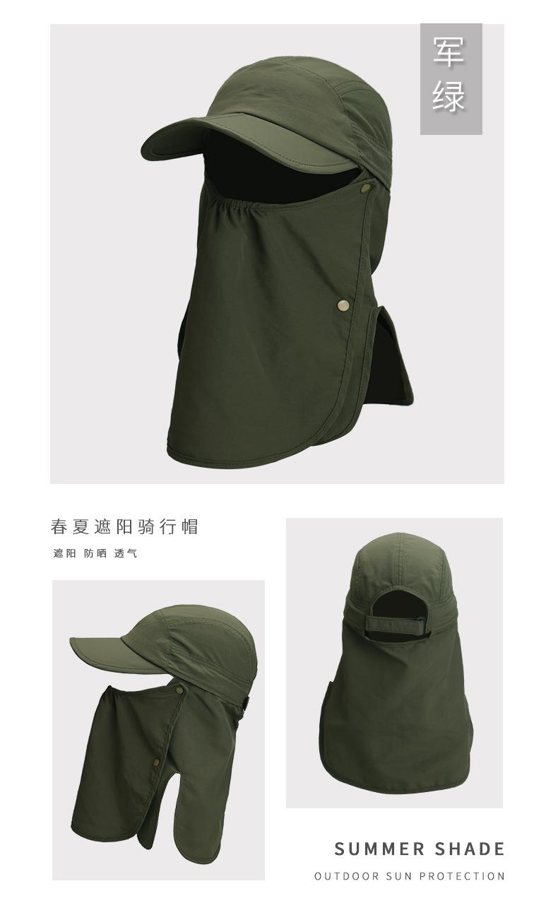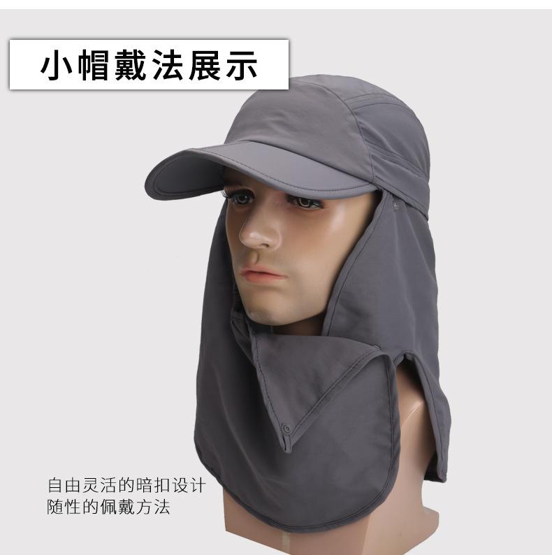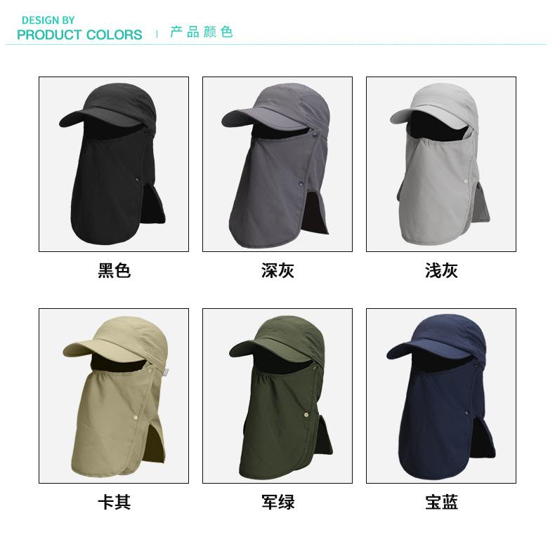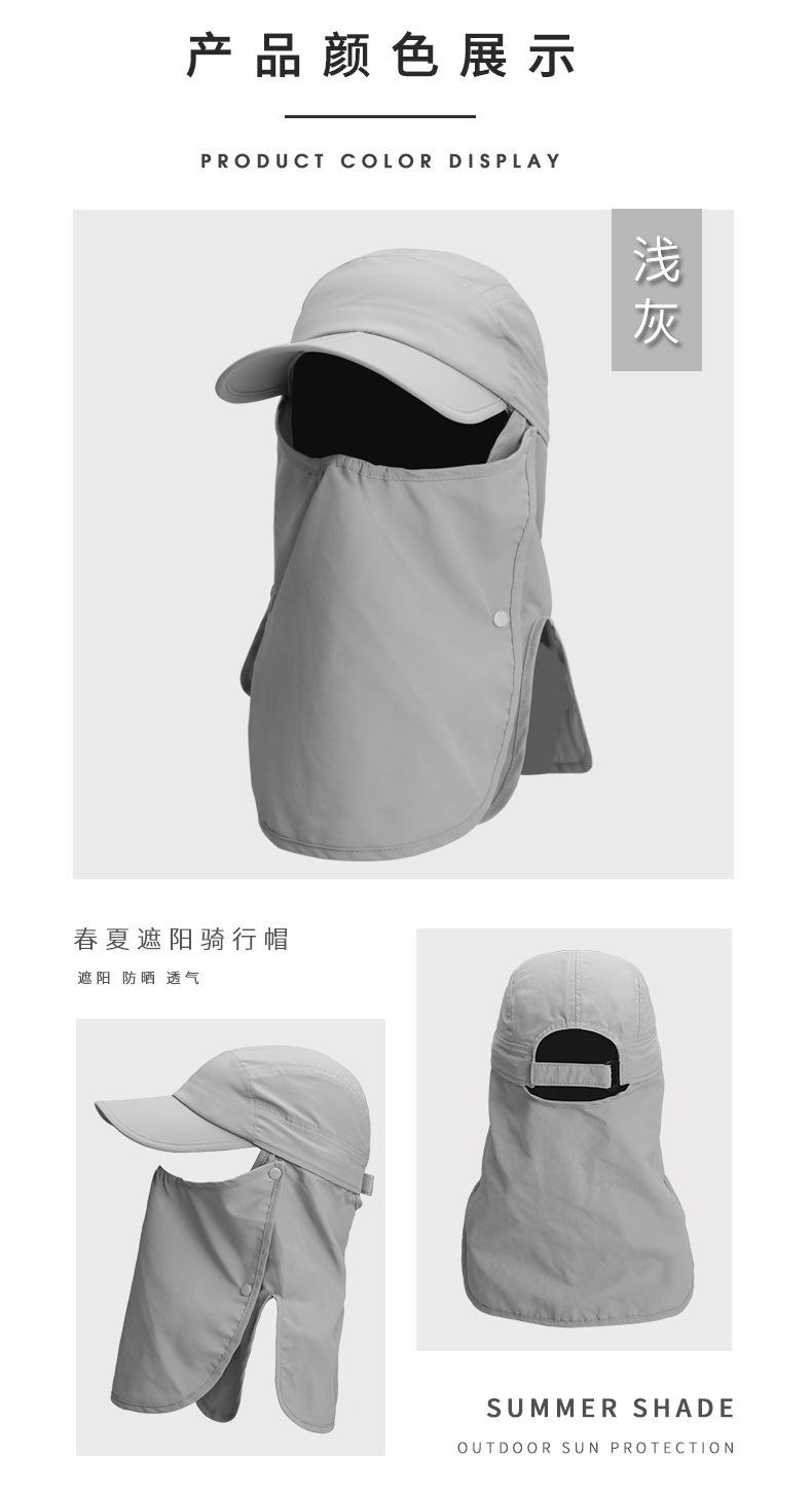 Boné de Aba Dobrável com Proteção Facial Removível para Sol de Verão Masculino e Feminino Ciclismo ao Ar Livre Upf50+ Máscara de Pescoço Impermeável