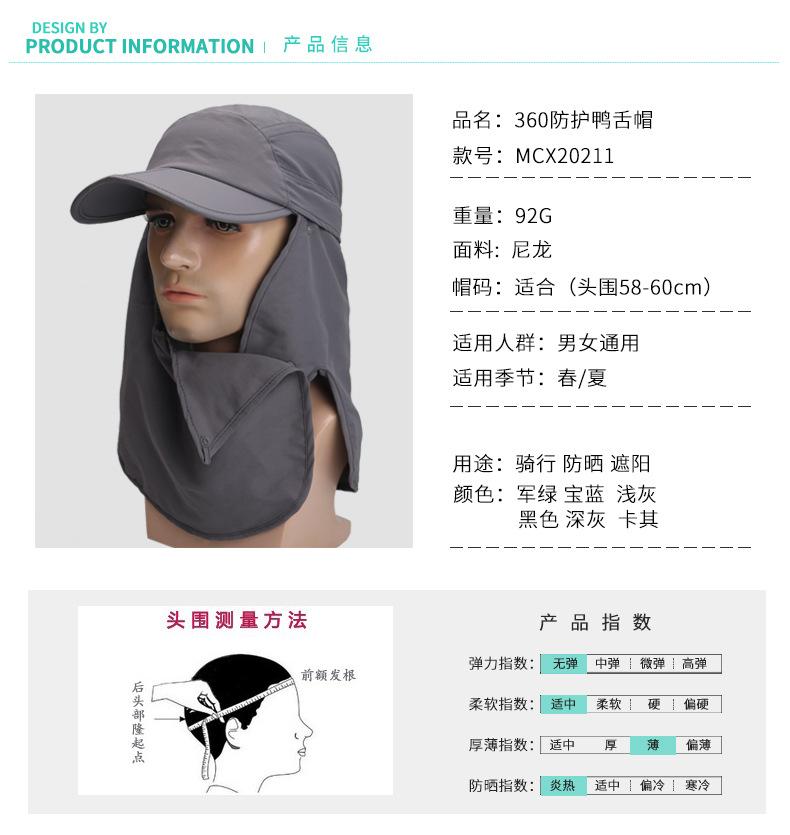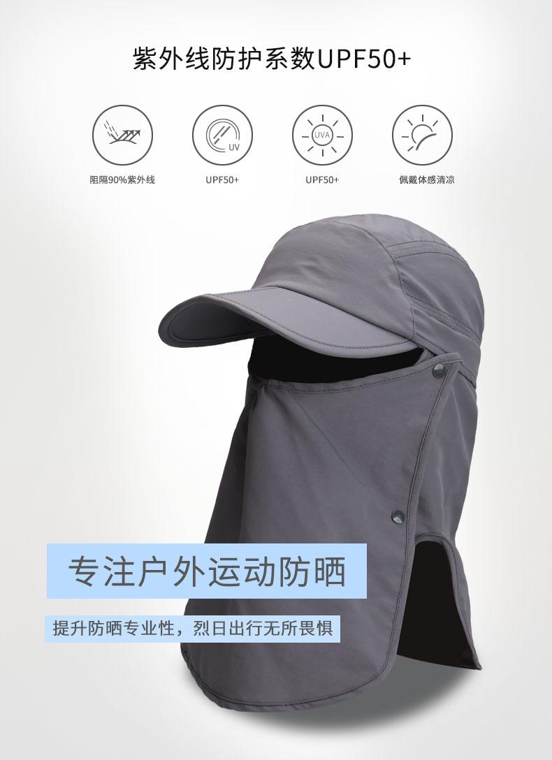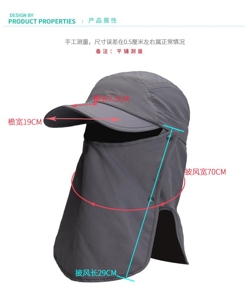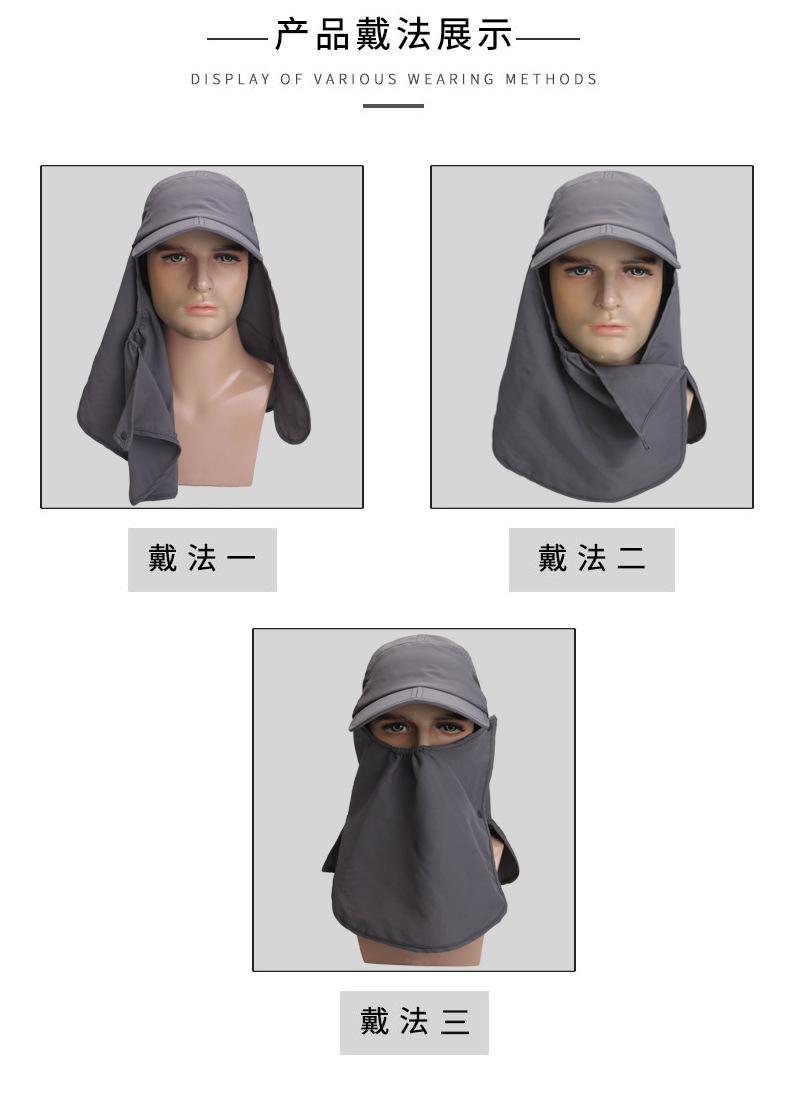 Boné de Aba Dobrável com Proteção Facial Removível para Sol de Verão Masculino e Feminino Ciclismo ao Ar Livre Upf50+ Máscara de Pescoço Impermeável