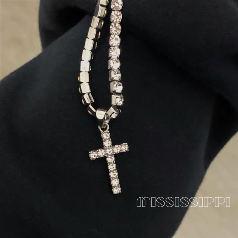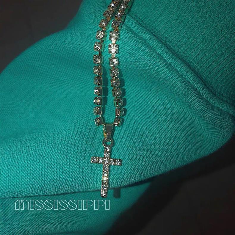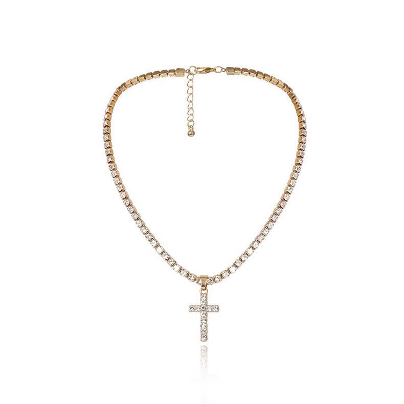 Colar com Pingente de Cruz de Diamante Corrente Simples de Garra Europeu e Americano Elegante Hip-Hop Estiloso Mesmo Estilo
